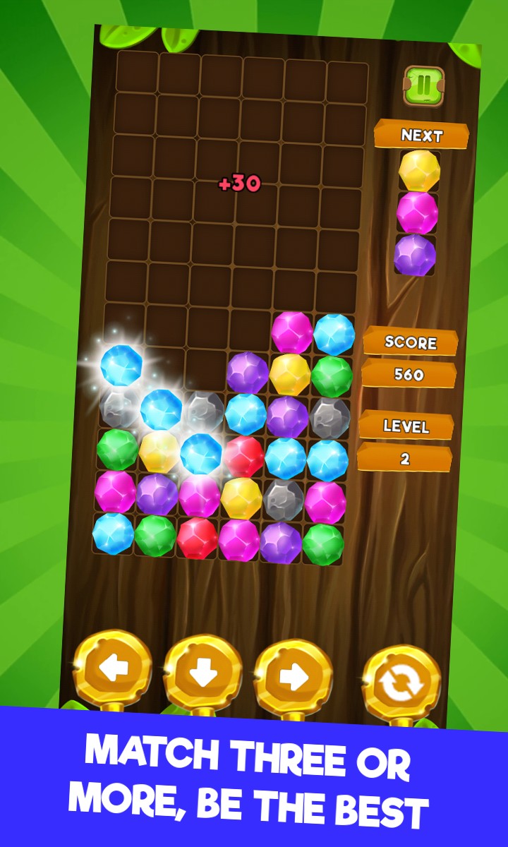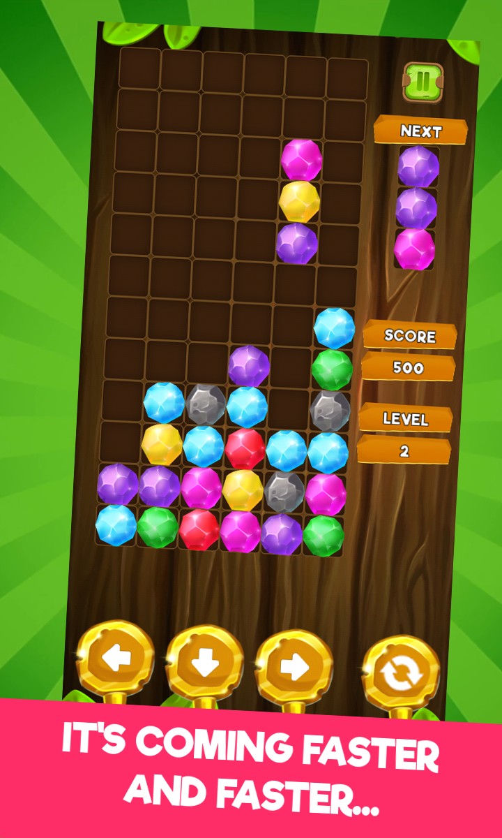 As you progress in the game, gem columns fall faster and faster. You have to align three or more gems from the same type vertically or diagonally.