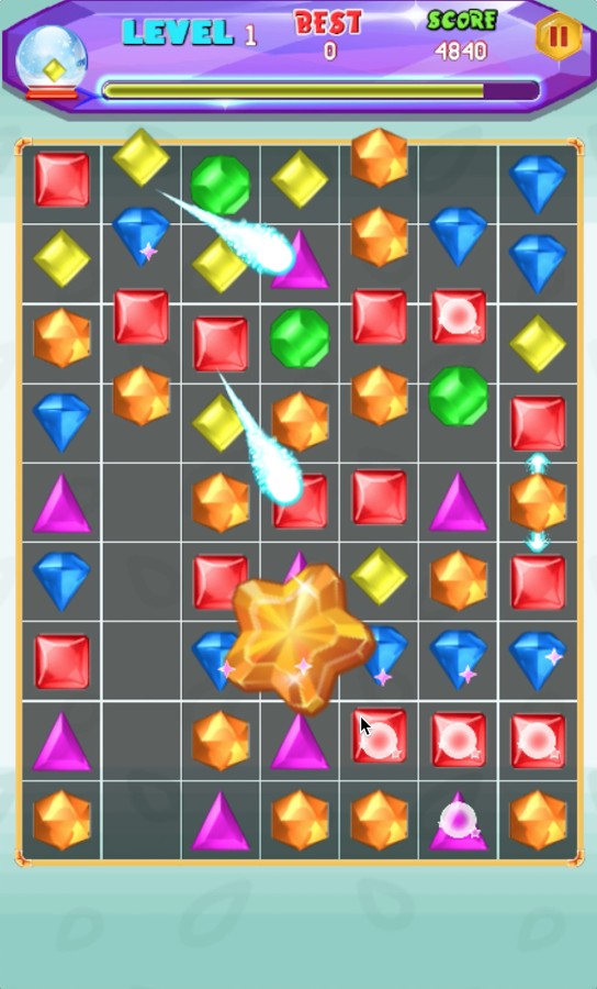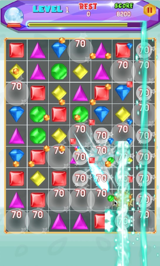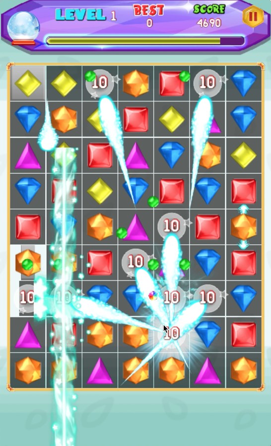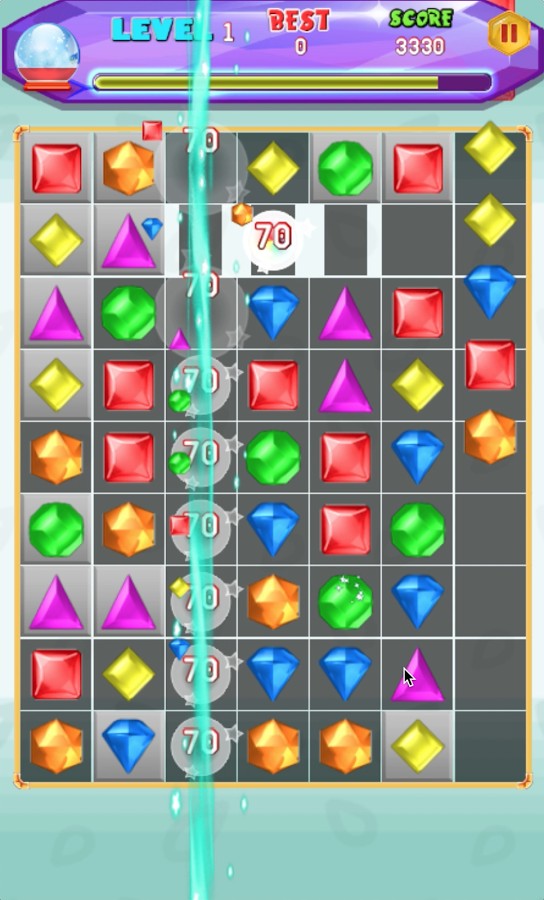Connect 3 or more jewels together to make them disappear. Match lightning, blast, and jewels for bigger bonuses and combos. With easy to use controls, fun and friendly graphics, and many levels to play, this game is fun for the whole family! If you like any other match 3 style game, you will love this game.