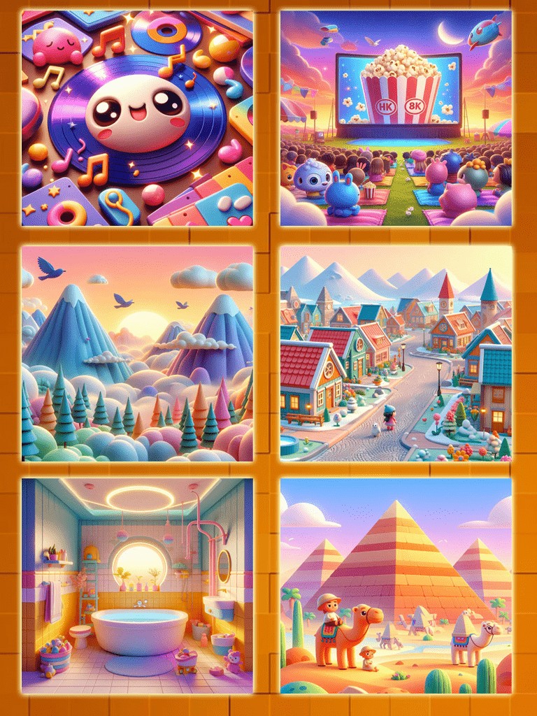 Immerse yourself in beautifully curated picture collections spanning multiple categories. Piece together breathtaking mountain vistas, explore iconic landmarks from around the world, wander through charming towns and cityscapes, appreciate elegant interior designs, relive memorable events and celebrations, examine fascinating transport vehicles, and browse through captivating photo albums. Each theme provides hundreds of high-quality images that transform into engaging puzzle challenges.