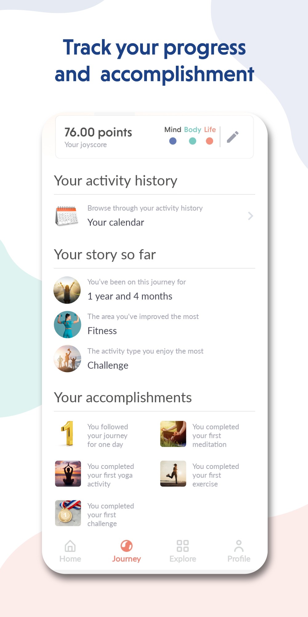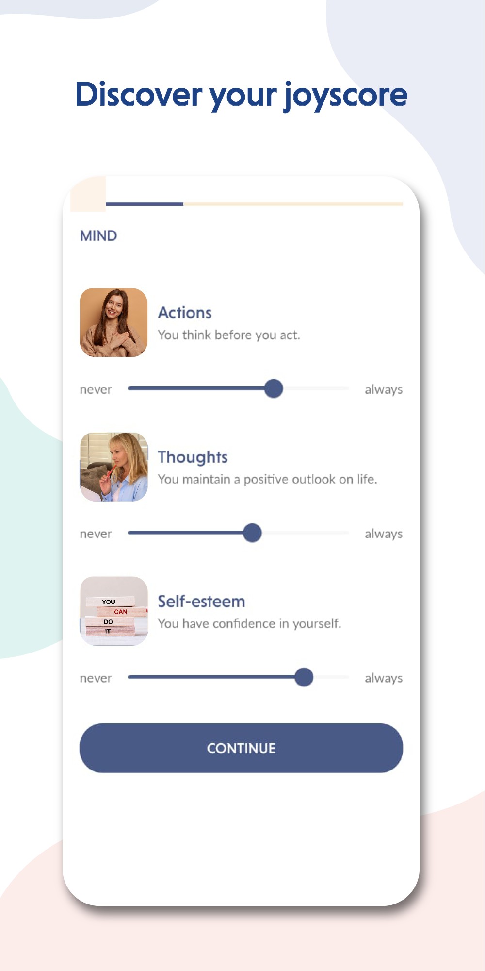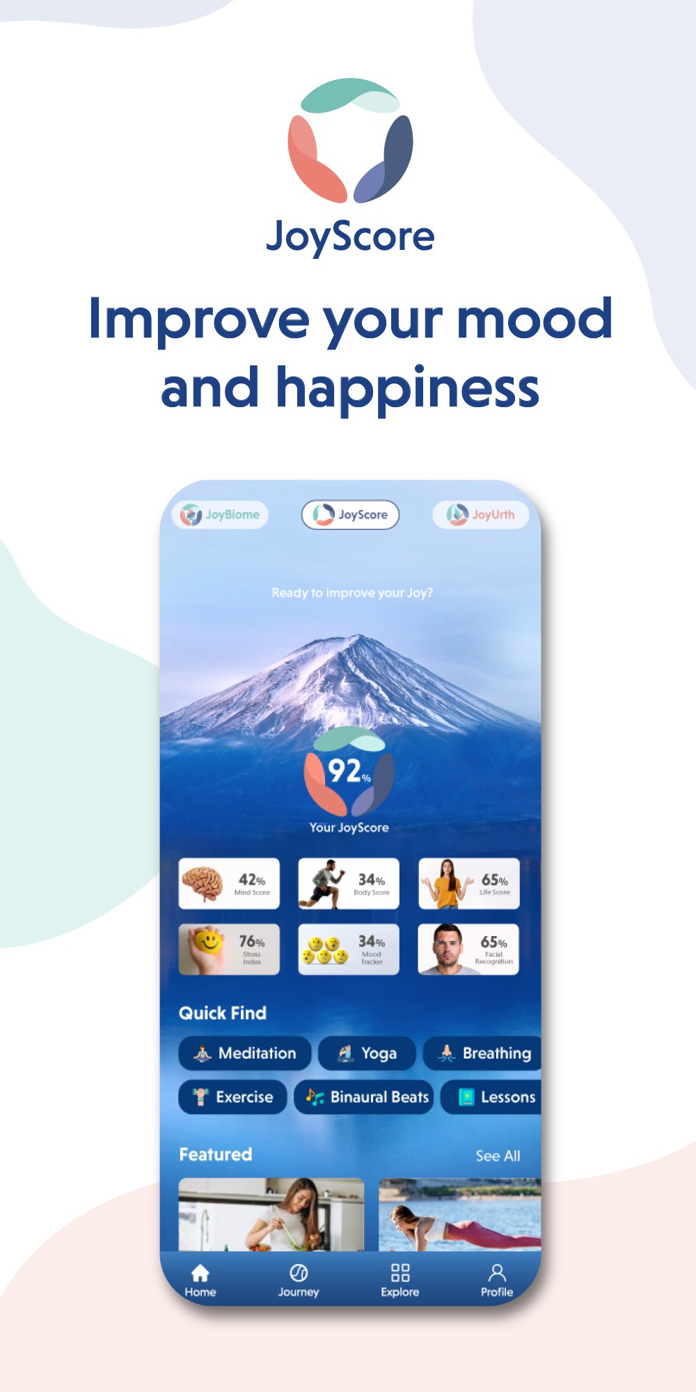We believe that everyone deserves a life filled with happiness. That’s why we created JoyScore. We designed this self-care app to measure and improve your mood and overall happiness through personalized activities and exercises that make you feel better in minutes. It’s the perfect app to begin your personal growth journey.