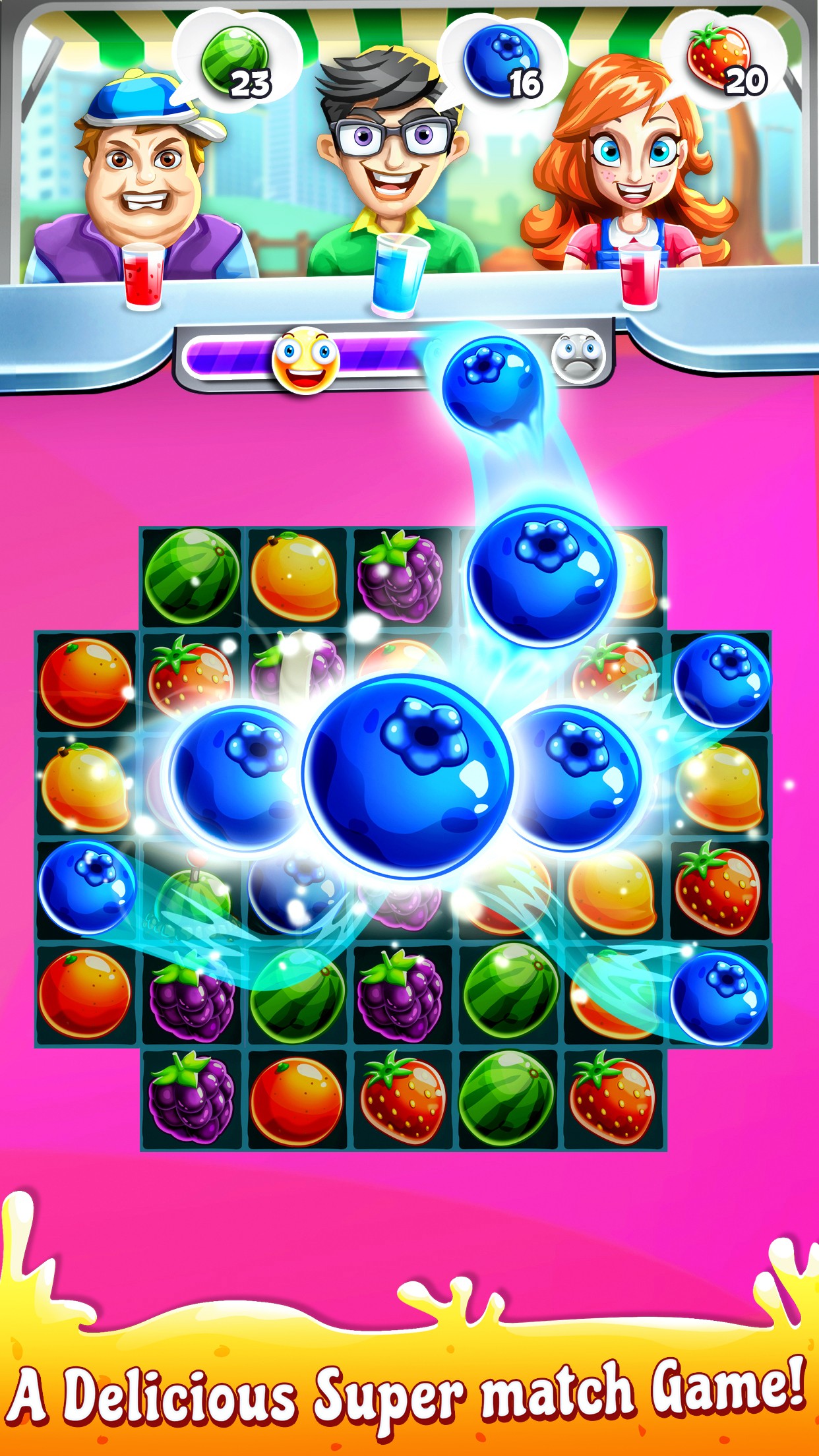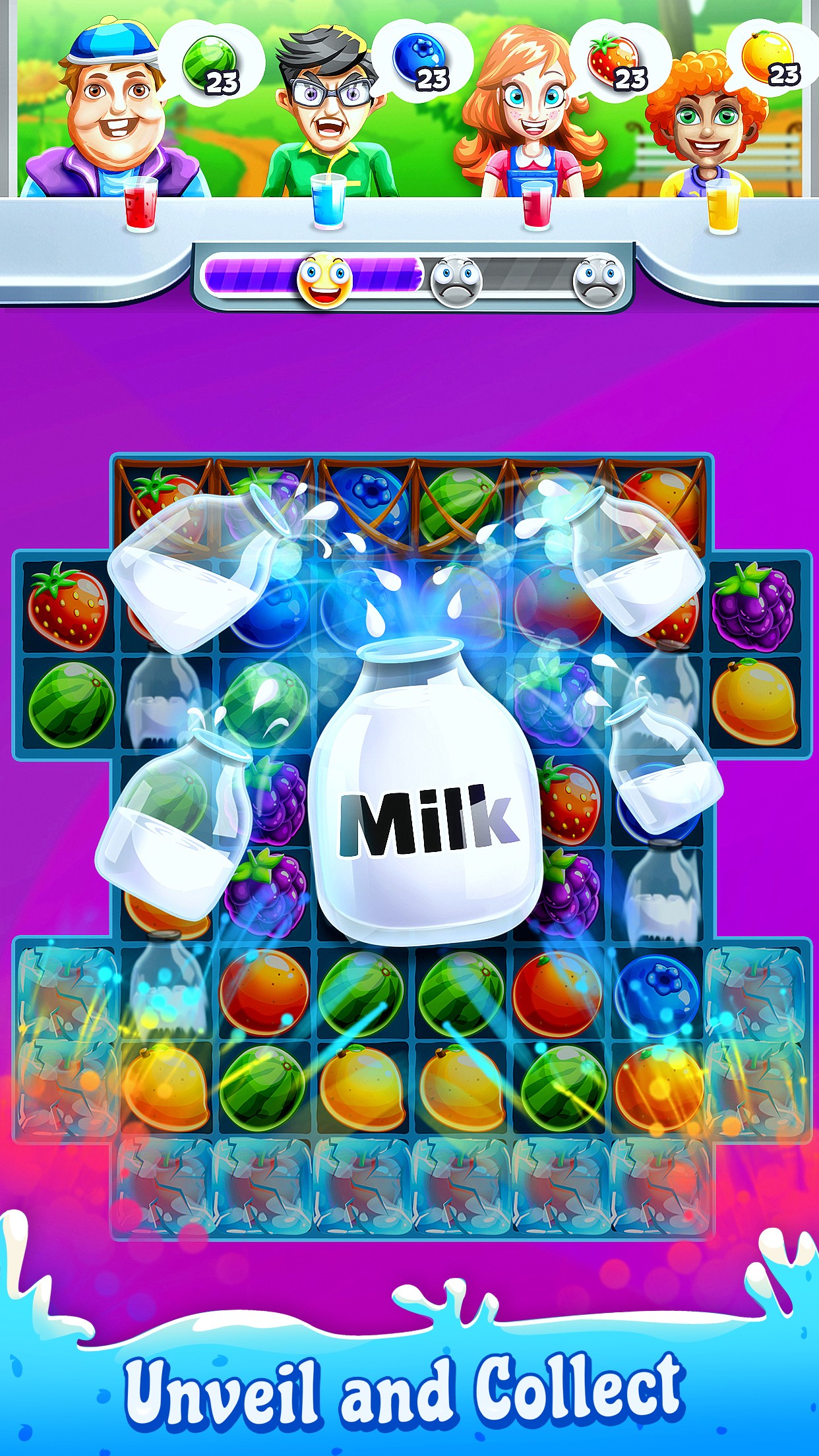 You’ll need to match 3 or more of the same fruit to add juice to their glass. When it’s full – the customer is happy! It’s not just about serving customers, it’s about getting the highest score possible and matching as much fruit as possible!