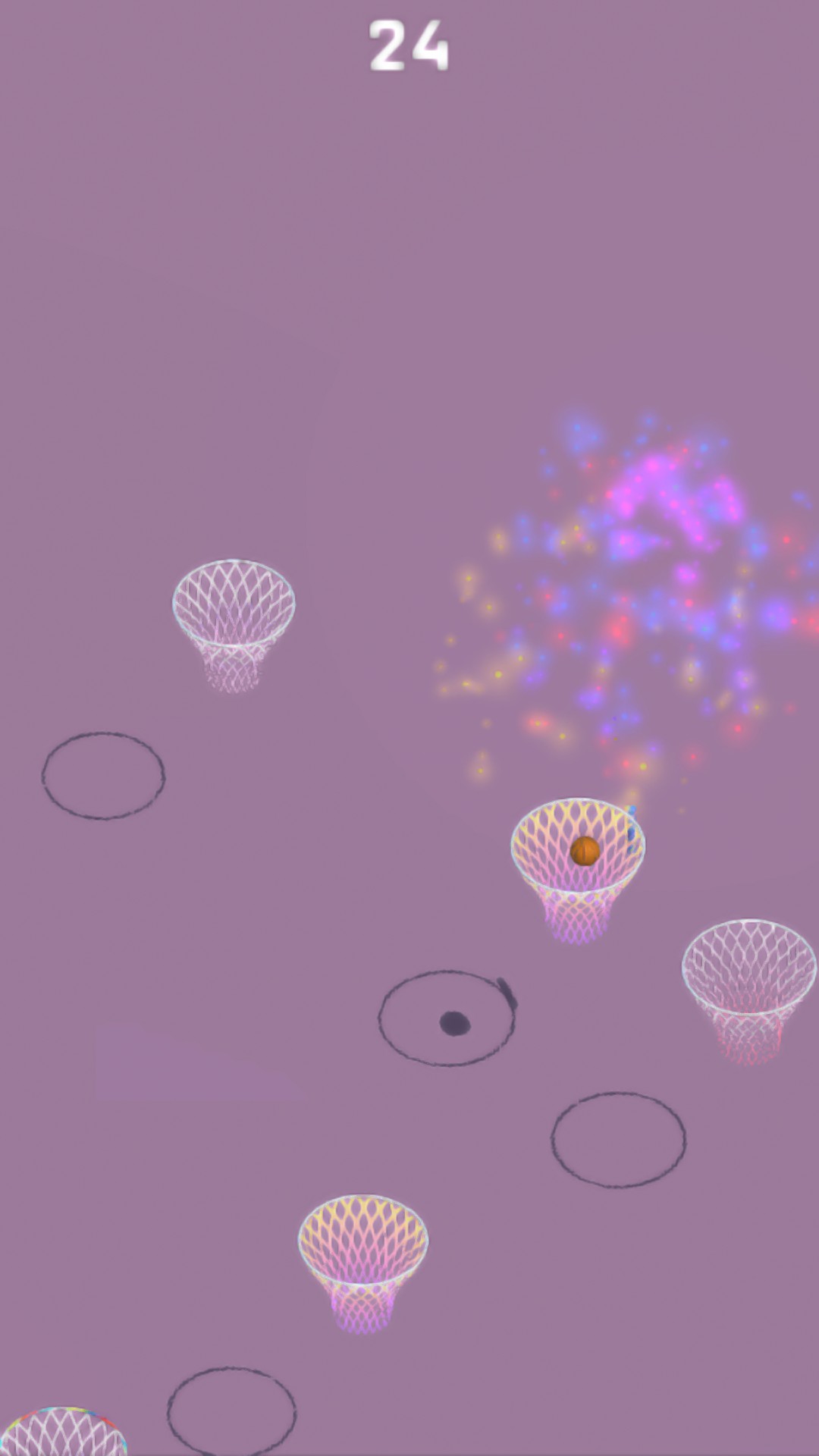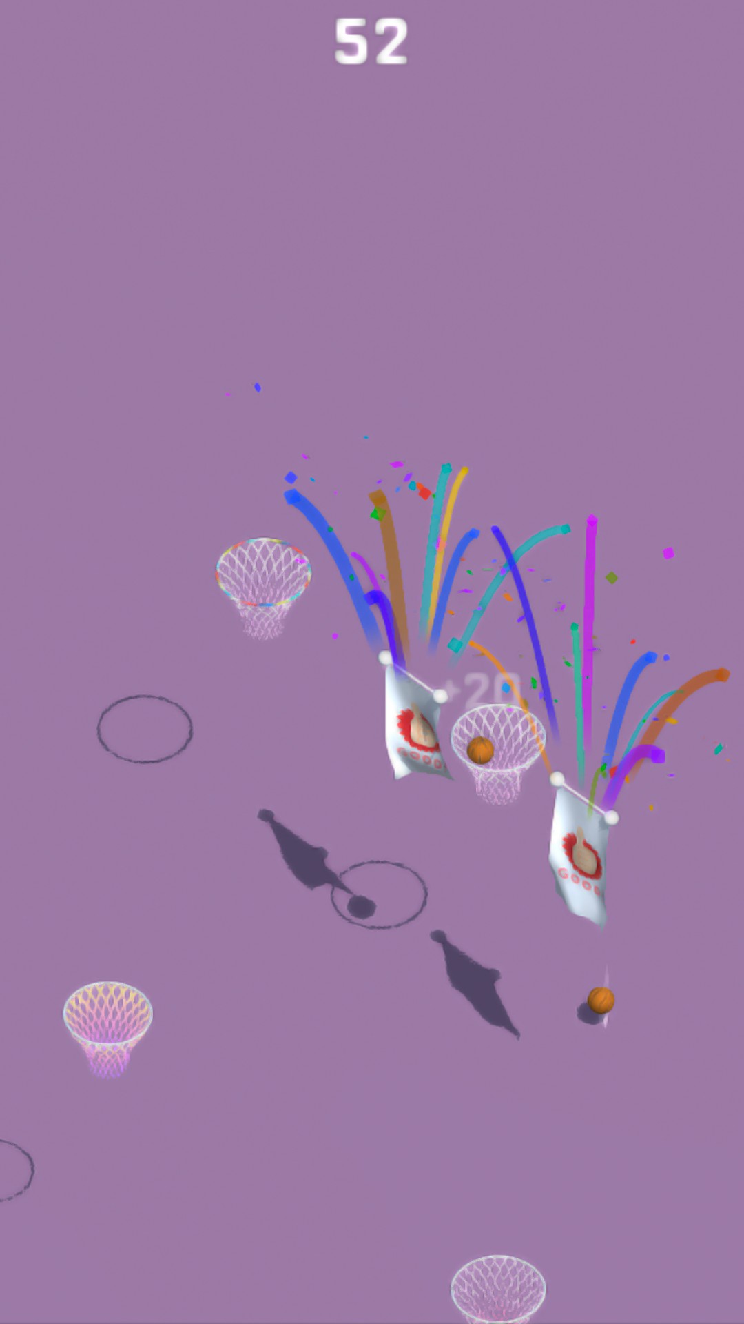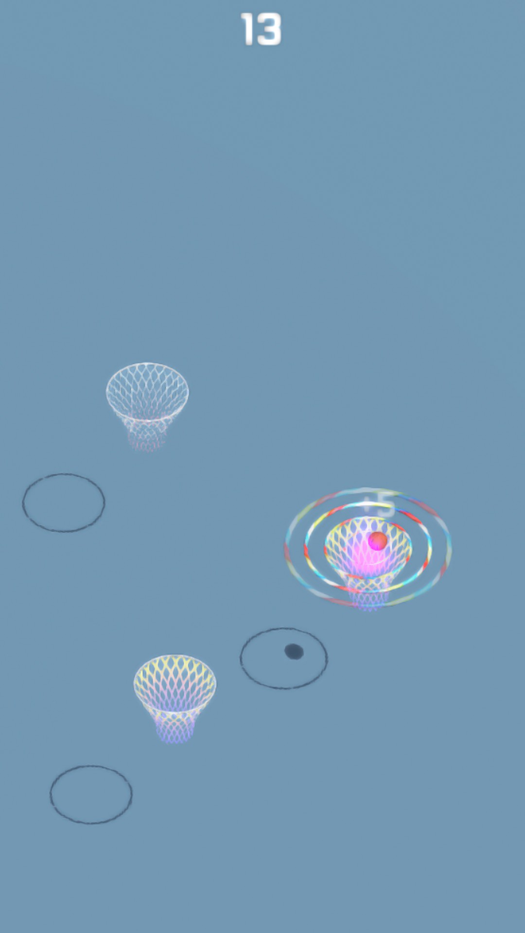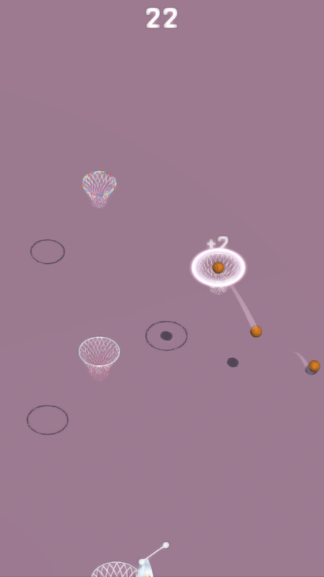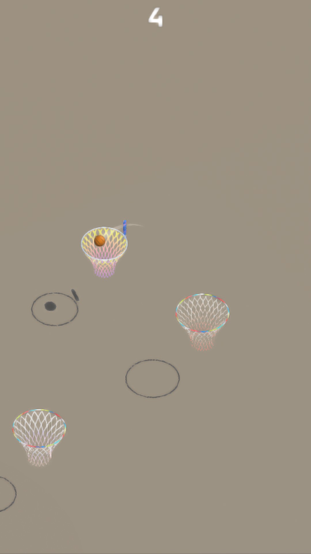 The player presses the screen and when the finger is released, the ball is thrown to the next basket. The longer you hold, the greater the pitching power. Be careful, don't throw the air ball, otherwise the game will end. If you hit the center of the basket, you will get +2, +4, +6, +8... Of course, there will be some special baskets in the game that will get extra points and you need to find them in the game (hint: wait).