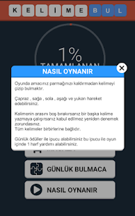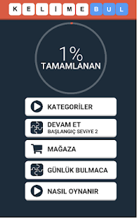 Kelime Bul, kolay bölümlerle başlayıp gittikçe zorlaşan bir oyundur.