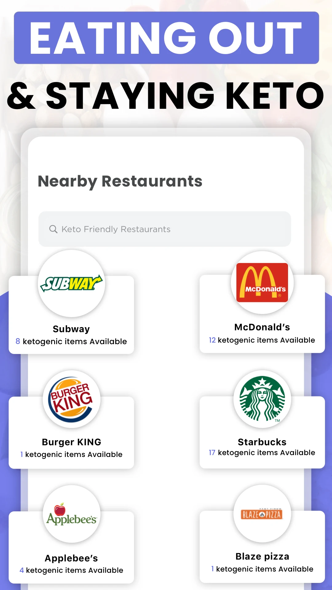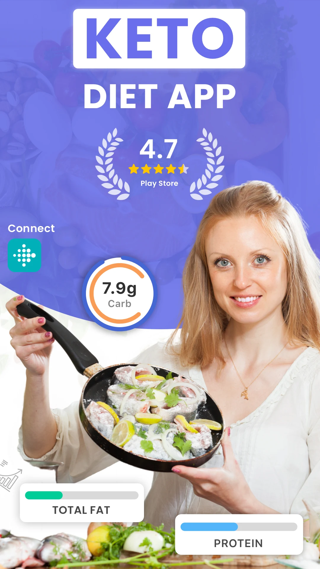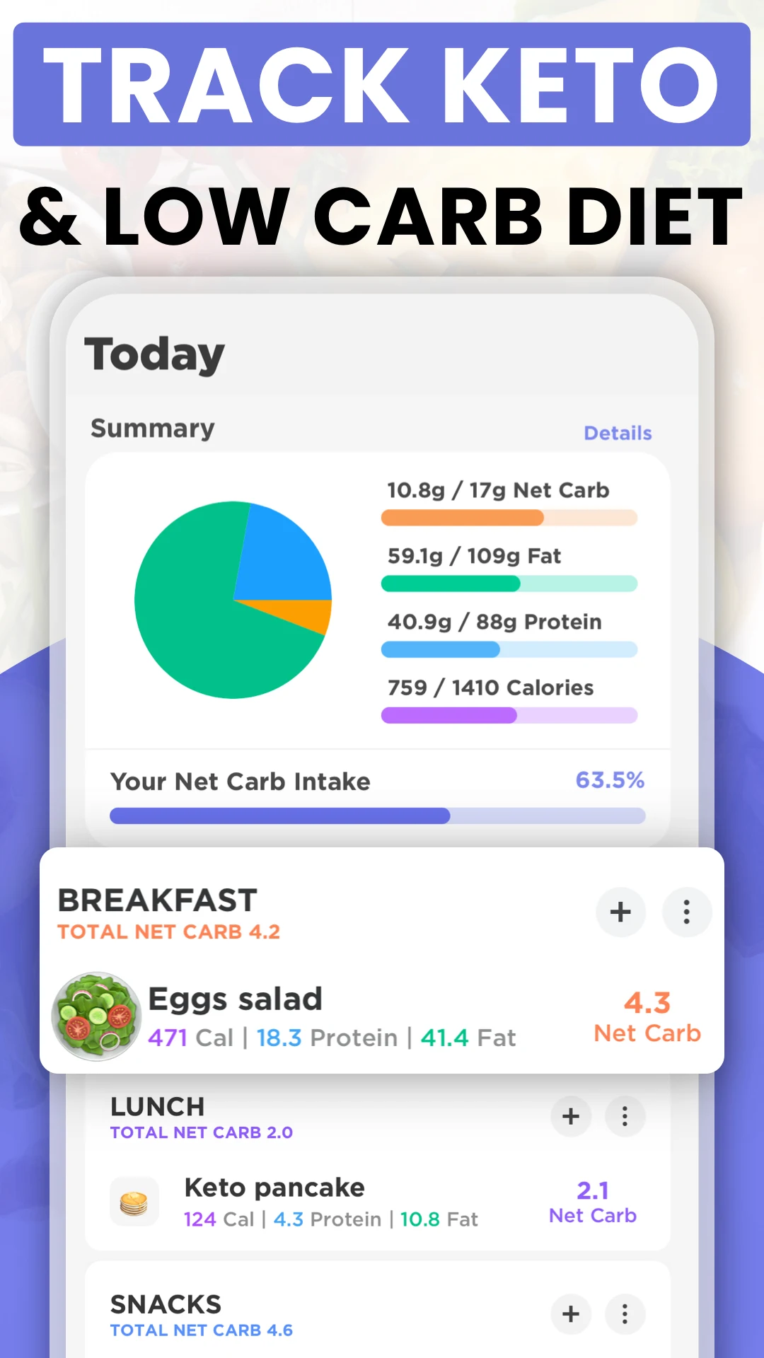 • Nutrition details: Total & net carbs, fat, calories, protein tracker, & more