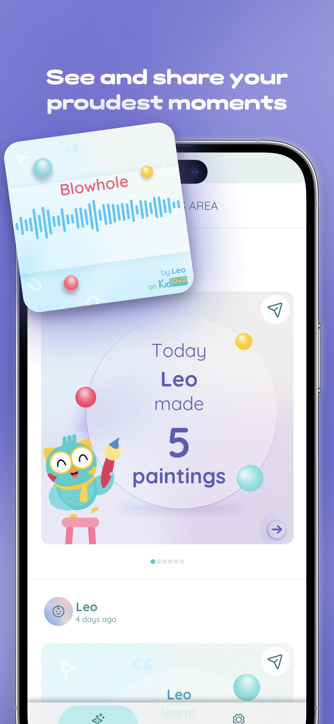 The world is amazing. Children learn every day. At Kidovo you see new words and concepts your children learnt. Replay them back and share these moments with your loved ones too.