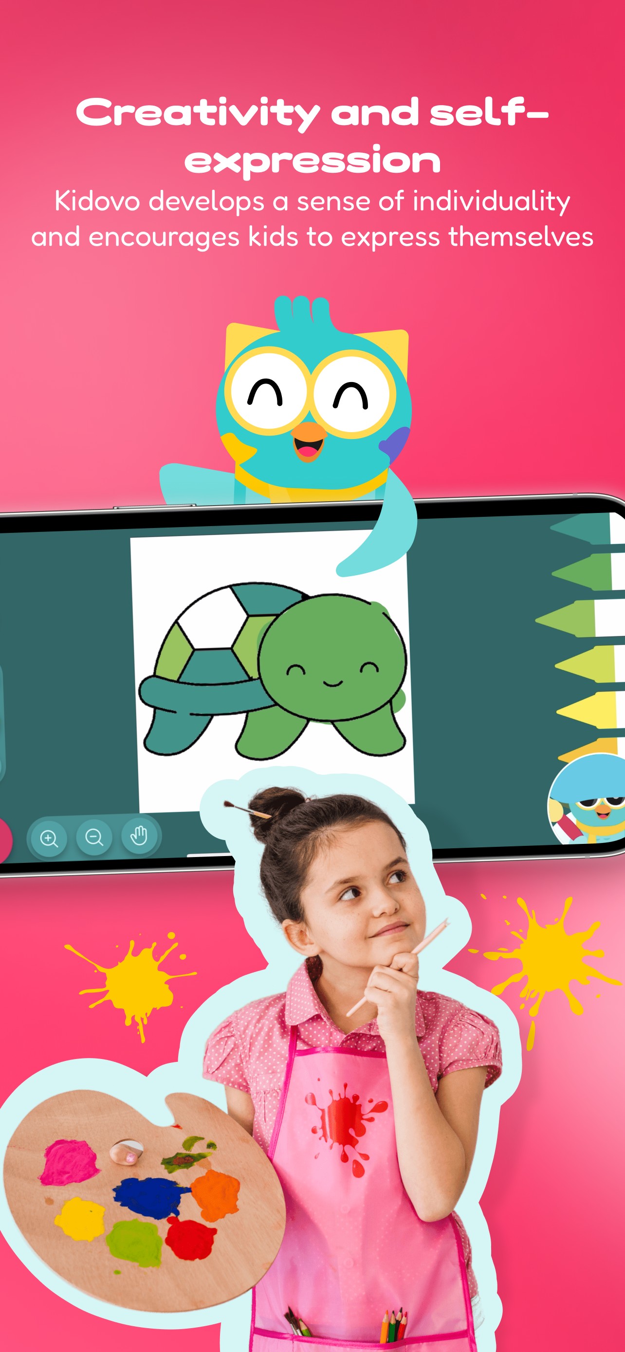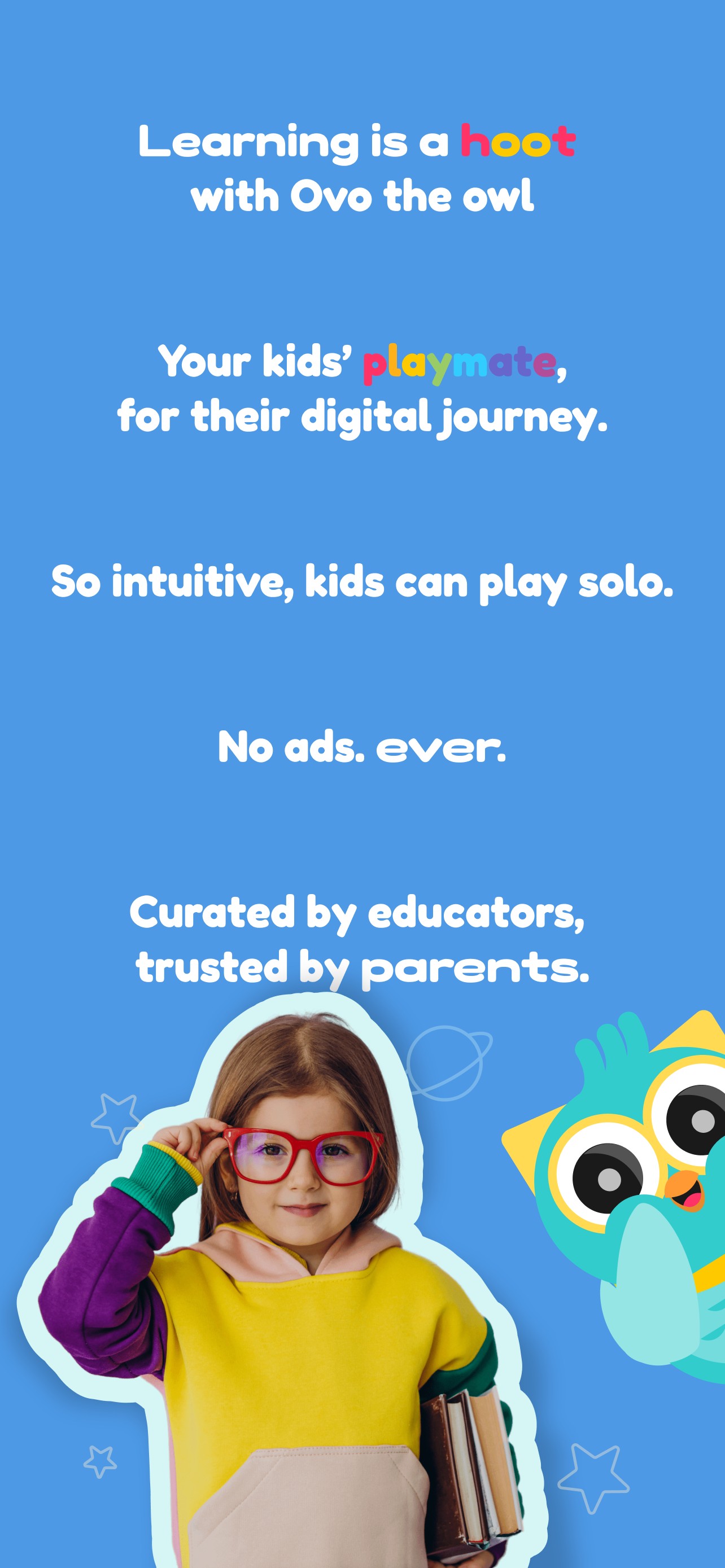 Children do require guidance, but Kidovo believes in building independent learning skills such as informed learning, learning by their own actions. Dive into plethora of topics with Ovo: Maths, Science, English, Art, History, ABCs, Numbers, Number lines, Counting, Bedtime stories, Coloring, Phonics