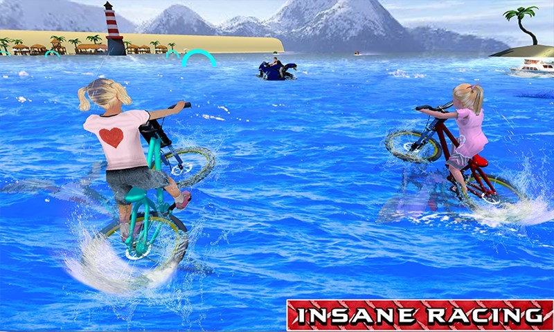 Kids Bicycle water surfer racing is here in which you have to start your journey from the seaside and to get ready for water bicycle racing in the ocean. Realistic water environment has been offered to have crazy kid’s bicycle racing in it. Kids bicycle racing is full of fun and adventure with thrilling racing missions.