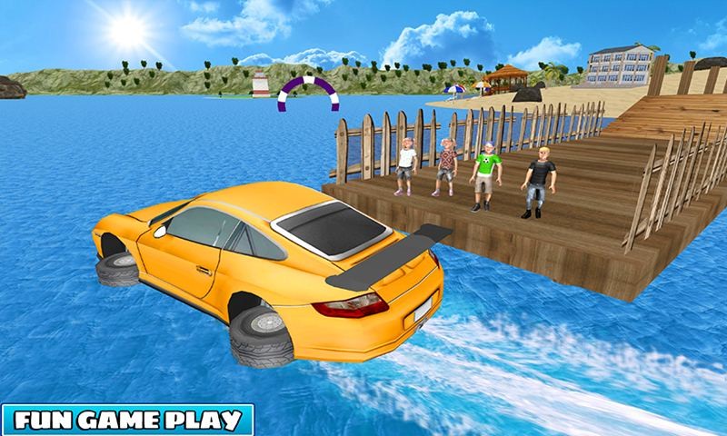 Kids Car Racing: Water Surfer Stunts chasing game especially design for the children who love the water games and racing games. Rescue the kids with the help of water sports car and drop them safely on their destinations. Reach on the finishing line before the rival’s water cars. Beware from the hurdles on the ocean and perform free style water stunts in best car show.Modern beach stunts and as a car rider you can drive your car on the beach as well as on the sea by transforming car into jet sky like boat.