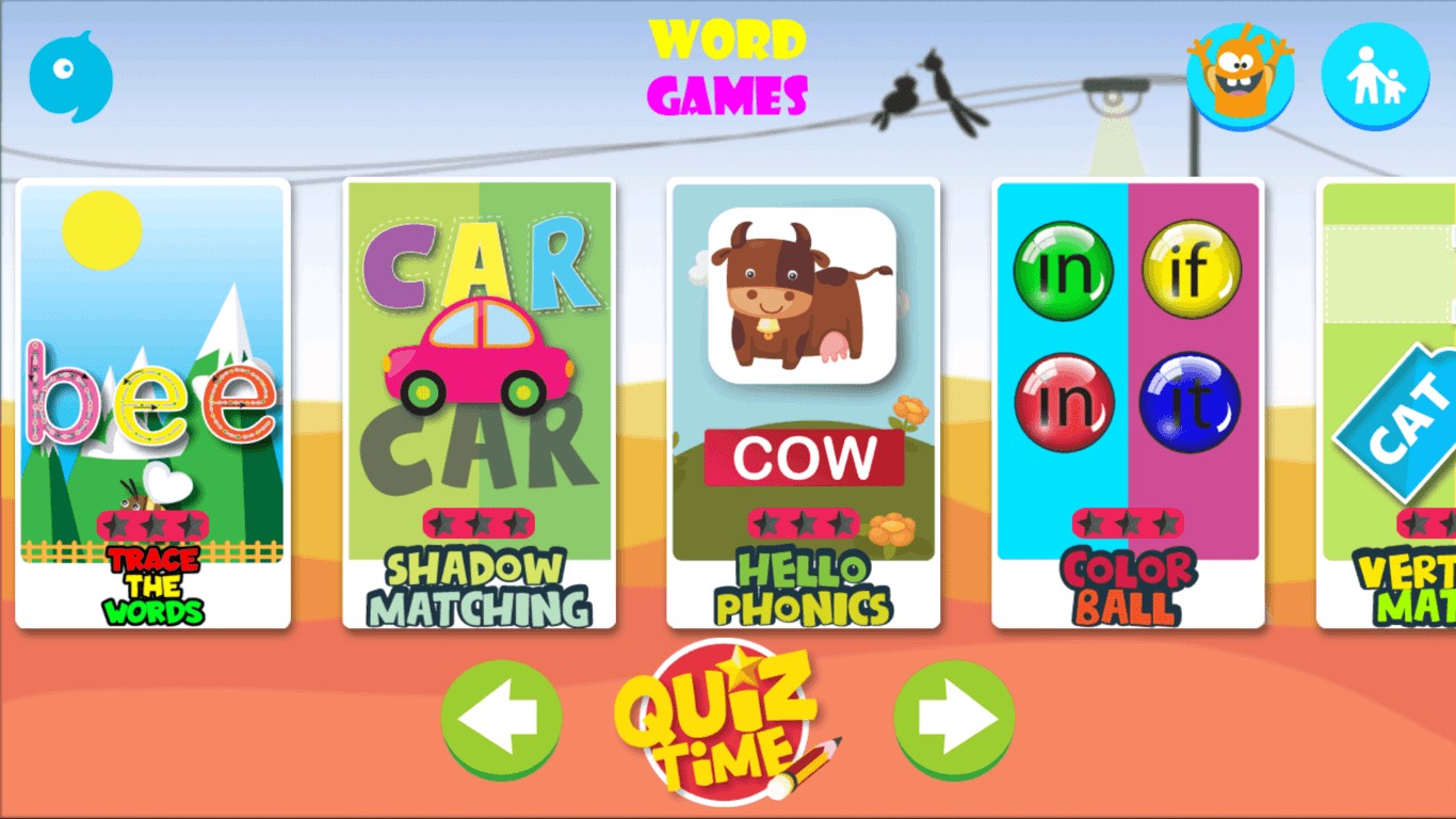 English Learning games for kindergarten & KS1 children to build vocabulary.To teach your kindergartener English Letters, phonics,english word formation,rhyming words. A fun learning app to help child read words.
