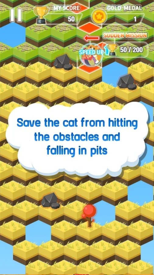 Kitty Cat Game: Tap the Qubes, Save the Cute Cat is an interesting free and cat falling game for people of all ages, who are looking for a cute kitty game. It is a new free cat game for Android. Explore different places with your cat. Unlock cool kitties from different countries by collecting coins and flags. When you Tap the screen, it will change the direction of your kitten. Save the cat from obstacles or falling into the pits.