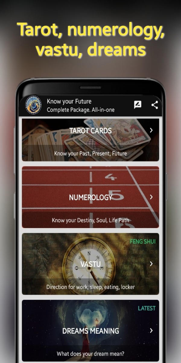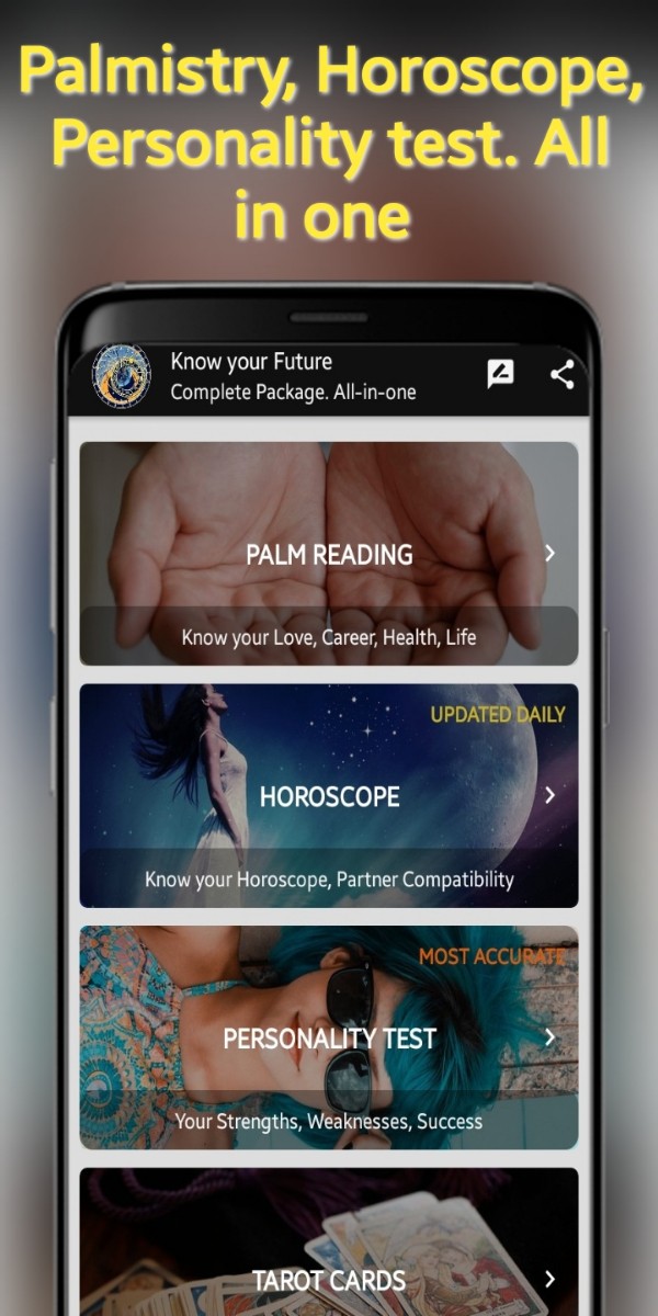You can future prediction by horoscope. You can predict your destiny. You can my true horoscope of birth. You have third eye spiritual reading. You can scan your palm. Read your palm. Palmistry palm reading. You can astrology, tarot card reading, dream dictionary. Couples horoscope and Love compatibility included in this app.