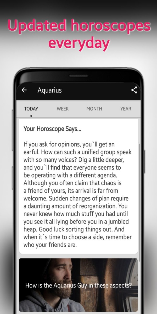 Our app provides accurate daily, weekly, monthly, yearly horoscope and zodiac compatibility.