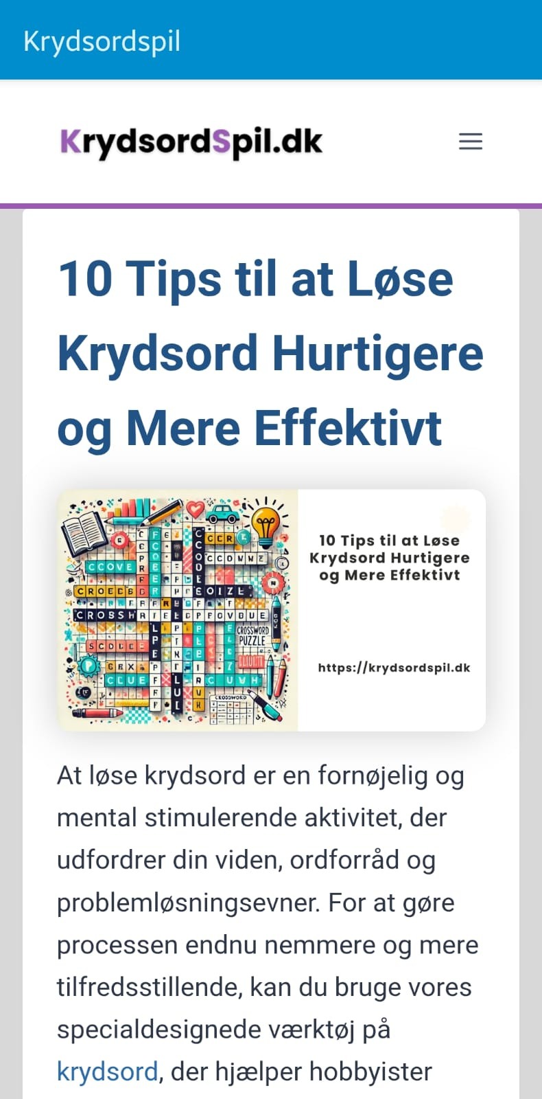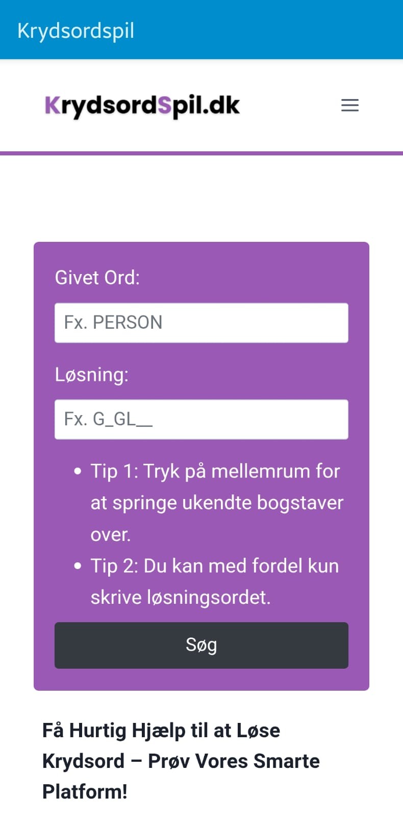 With our easy-to-use crossword solver, you can enter the letters you know and get suggestions for words that fit. It saves time and makes the crossword experience even more fun. Krydsordspil.dk is ideal for anyone who loves to solve crosswords and wants help when a word teases.
