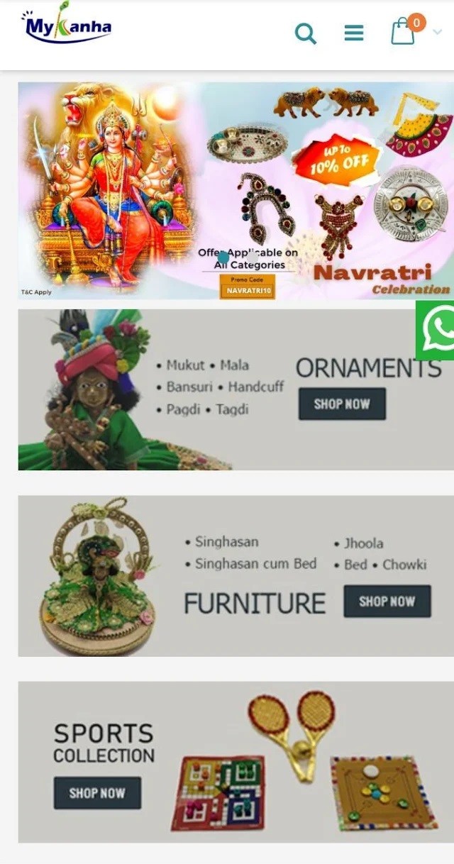 Mykanha will provide you variety of products such as God Dresses, God Accessories & God Shringar and specially a huge range of Designer Laddu Gopal Dress, Designer Radha Krishna Dresses, Thakur ji dress. You can add products accordingly into your cart and we will provide you products at your location. Enjoy our user friendly services and get our unique as well as good quality products right here at one place.