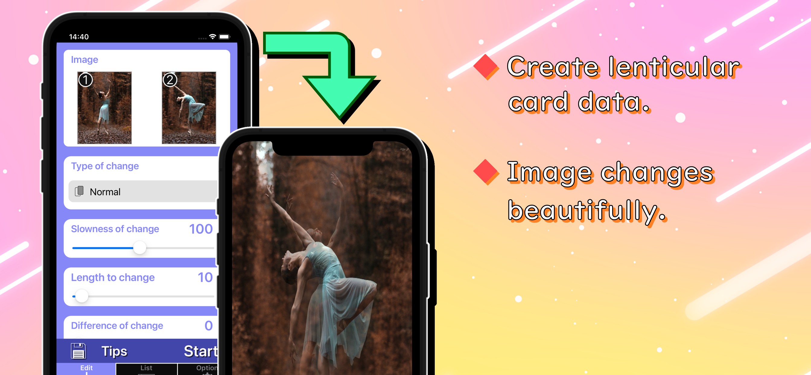 While running, the gyro sensor detects the tilt of the device and an image changes gradually.