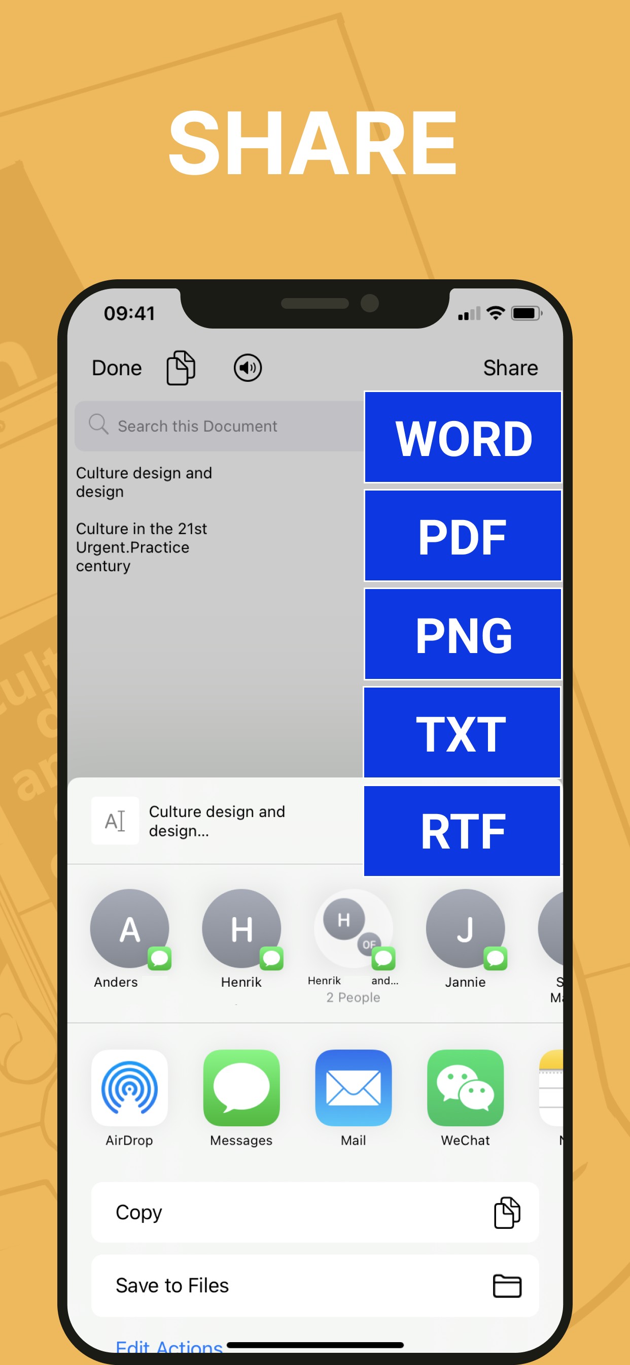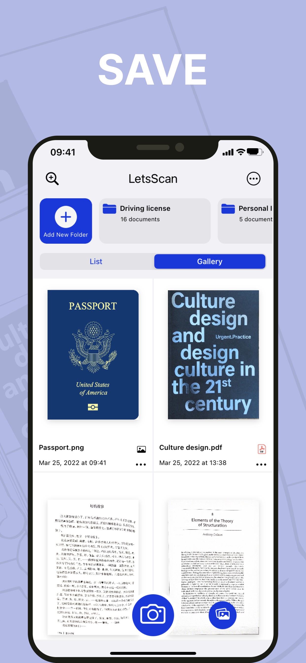 Your digital documents can be saved in folders and shared as JPG or PDF format. It is fast to sort and search for all documents across folders. It is possible to import.