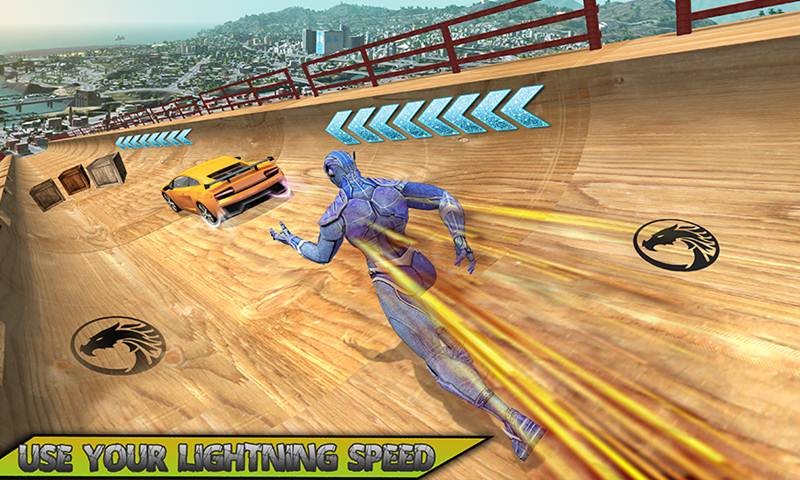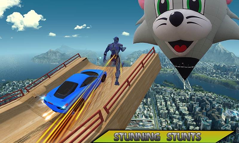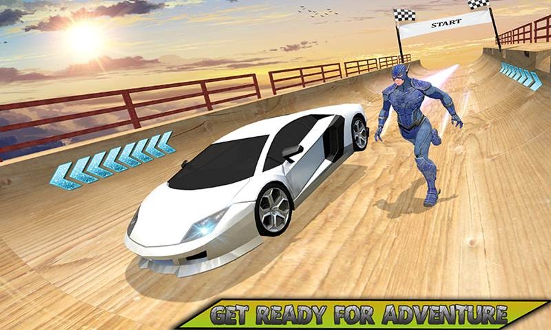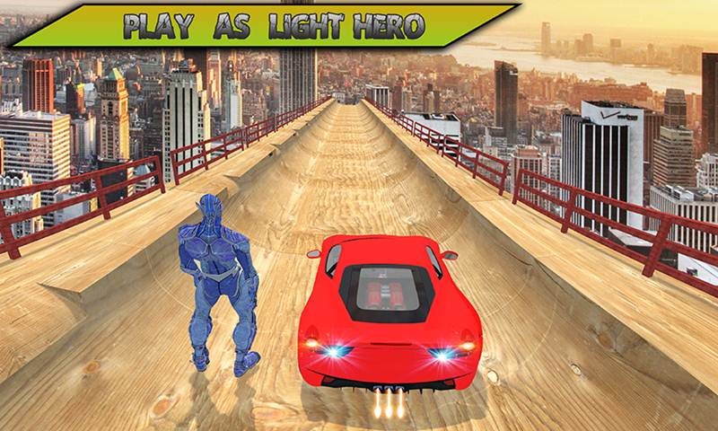 Welcome to the new grand ramp racing game of next generation stunts in light hero vs super cars vertical stunts. This mega ramp game will accept with warm welcome because of impossible biggest ramp ever with the touch of the Super Hero. The skydiving stunt car racing game will be serving best for hardcore vehicle used in this mega ramp game. In this tunnel twist mega ramp car gt racing extreme stunts used for performing best tricks on longest impossible free fall tracks and beat your opponent to show the finest skills for this type of ramp racing competition.