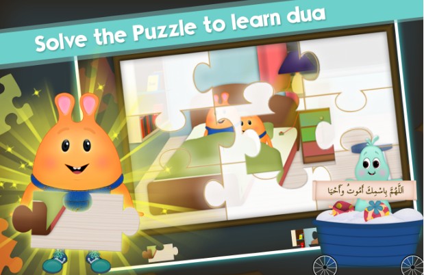 Apart from the sprinkling theme, the game has 32 levels out of which the first 17 encapsulates puzzle completion and the remaining comprises Quiz for the kids to help them in memorizing Islamic Duas along the occasion of when to recite through alluring animations.