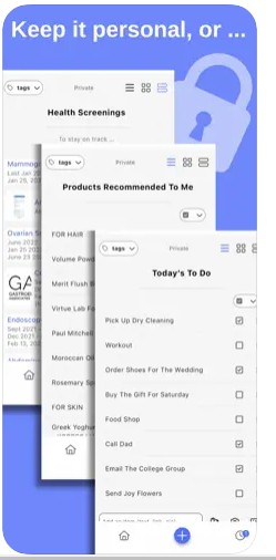 Never again lose the lists of shows people recommended, books you want to read, products you want to buy, bucket list adventures or the paint colors on your walls. Share your favorite restaurants, recipes, movies, or life hacks with everyone or just a select few. Collaborate with friends on a trip itinerary, your partner on house to-do lists, your colleagues on project checklists, or your decorator on potential purchases.