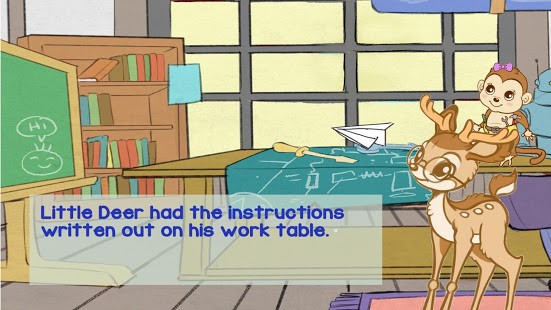 Little Deer is a budding engineer who lives in the Land of Willow Trees. He has a whimsical workshop where he likes to examine, research, and build things. In this story, his best friend, Mechanic Monkey, sees a real airplane fly high in the sky and Little Deer decides to make a paper one. Follow along in their quest to assemble materials and make a paper airplane!