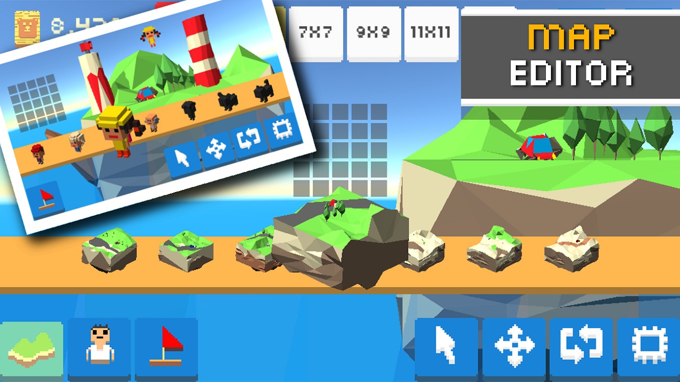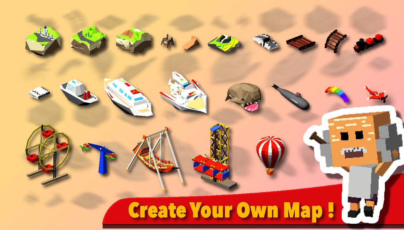 Once player beat a new level, the terrains and victims in that particular level will be unlocked and could be used in map editing. Player can design their own levels and challenge with other friends.