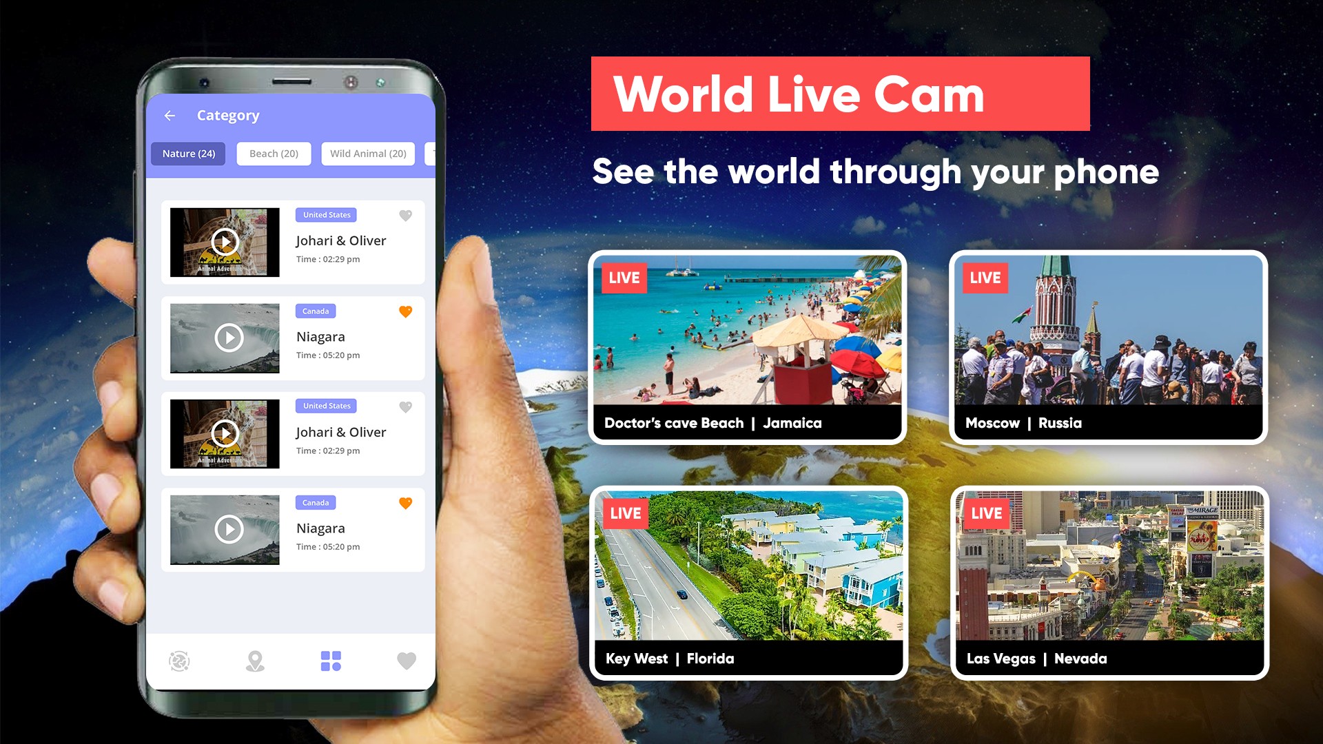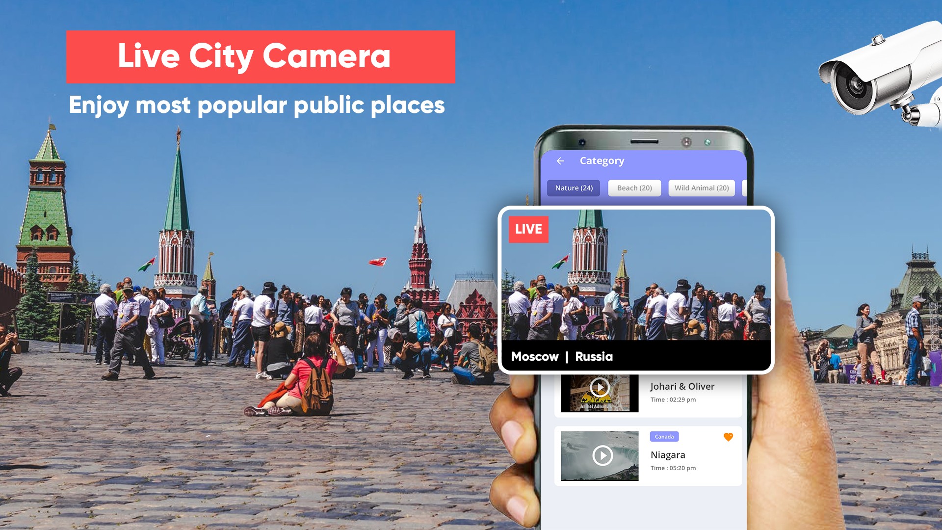 Our app is providing you with live Earth cameras where you can watch live street view CCTV, satellite maps, and many other cams around the world. We bring the world to your fingertips - Visit every location you want! Explore famous places, restaurants, zoos, check the traffic - The world is waiting to be discovered!
