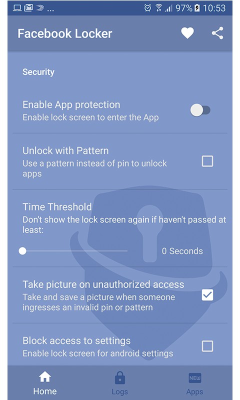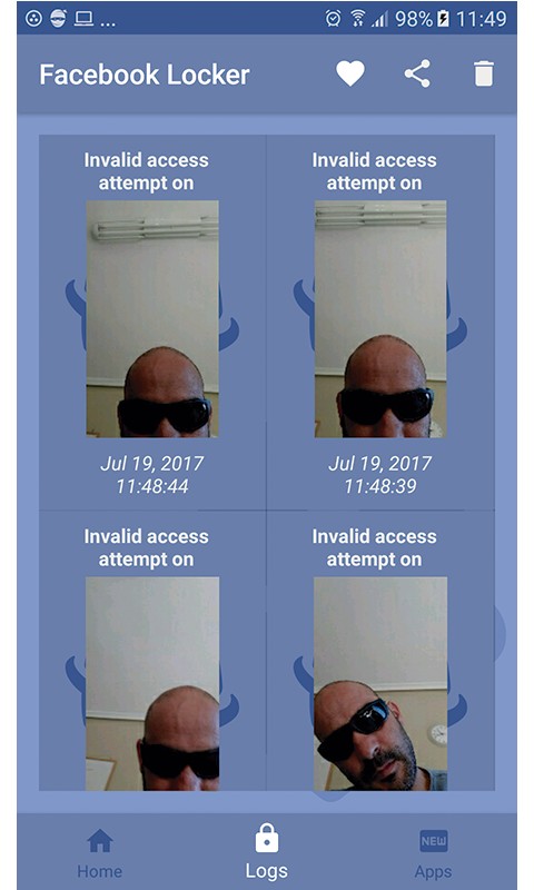 Capturing intruders when trying to access Facebook & Messenger is only available for devices with a front camera. If you enter a wrong pin or pattern, a small, visible image will be generated within the logs section of the Lock for Facebook & Messenger application; Camera and storage access is only used in case of activating the Image capture option of failed access attempts to Facebook & Messenger