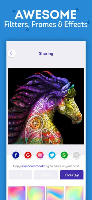 Drawing and coloring are one of those activities which everyone likes to do. To paint the image is a different kind of enjoyment and refreshes the mind. For art lovers here is loco coloring & painting book app. Get the interesting & stress free approach in your device. It’s an easy way to show your creativity in your device. Get different HD quality images to color and paint in this colorbook. Once done with coloring & paint a beautiful image, give the finishing look through frame, filter & overlay and share your art on different social media channels. This colorbook app suitable for all age group users including children’s and adults. Enjoy the coloring & painting a pattern anytime and anywhere in this color book app.