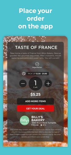 On the Lovvett app, you can get discounts of around 50% on fresh unused meals and items from your favorite food venues. All your meals are fresh and our mission is to help you get the most amazing meals with the best offers while reducing food waste and helping local businesses thrive. With Lovvett, everyone wins!