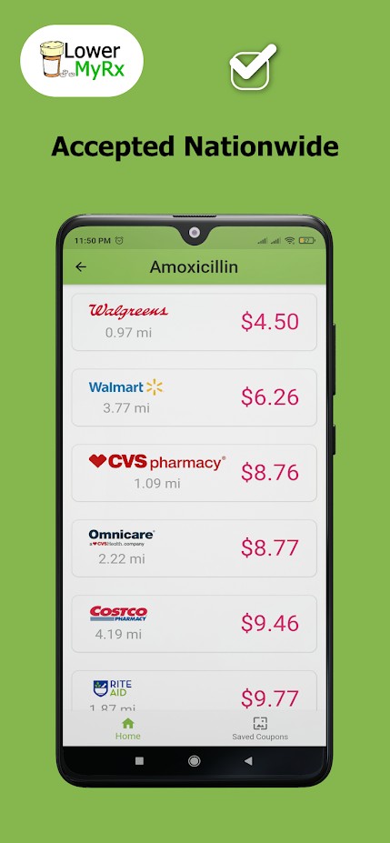 LowerMyRx provides medication discounts on both brand name and generic prescription drugs at over 35,000 pharmacies nationwide. Users have saved up to 80% on prescription drug purchases at their current pharmacies with free Lower My Rx pharmacy coupons. Use the LowerMyRx Prescription Coupons and Discounts Mobile App every time you go to the pharmacy and save.