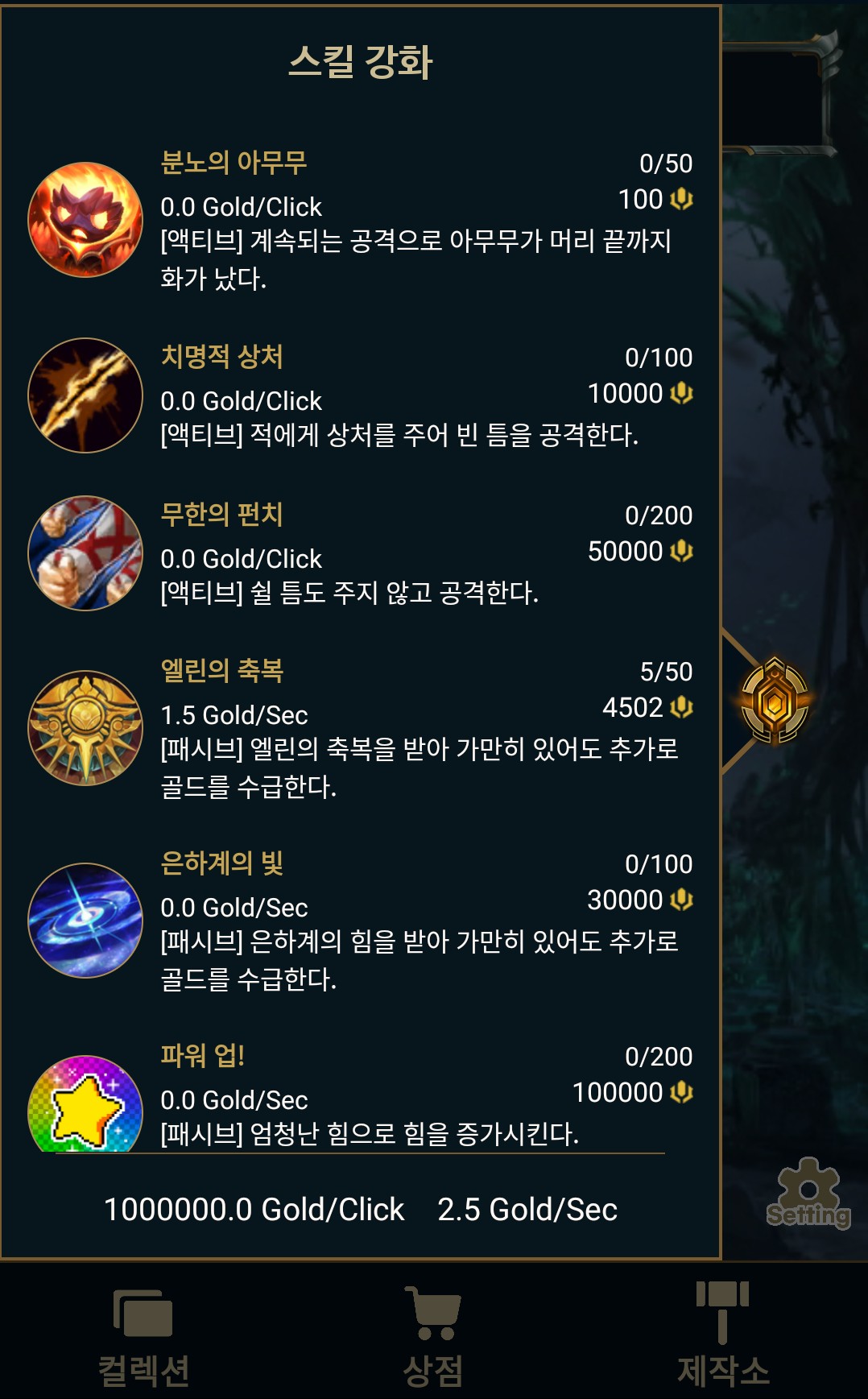 * When upgrading passive skills, gold is automatically supplied even if you are not playing the game!
