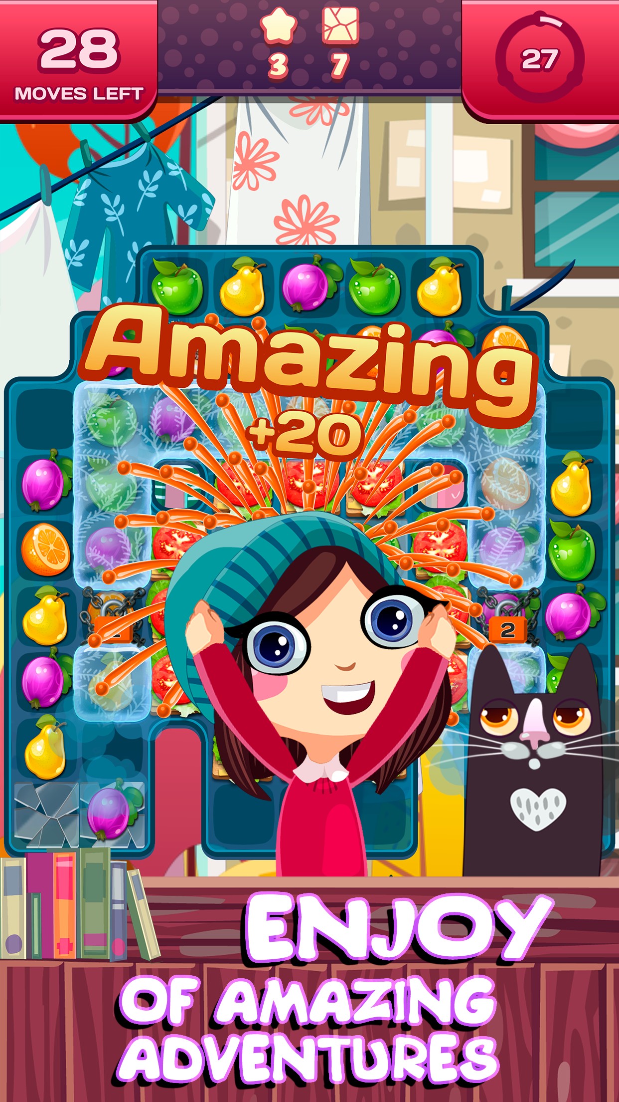 ★ Swap, match and crush fruits in hundreds of fun and challenging match-3 puzzle levels;