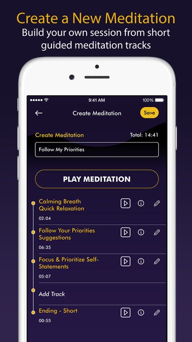 In the app, you can build your guided meditation from short guided tracks, which combined in a playlist, creates a smooth and highly effective meditation experience. This approach is totally new, as it is 100% tailor-made for your momentary needs and available time.