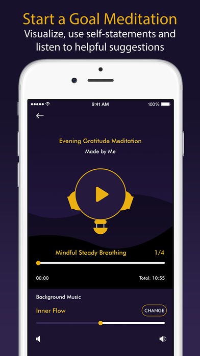 Meditable empowers you to personalize your guided meditation experience. It gives your meditation sessions a boost, as you can - for the first time in meditation apps' history - totally personalize a guided session to fit your goals and schedules.