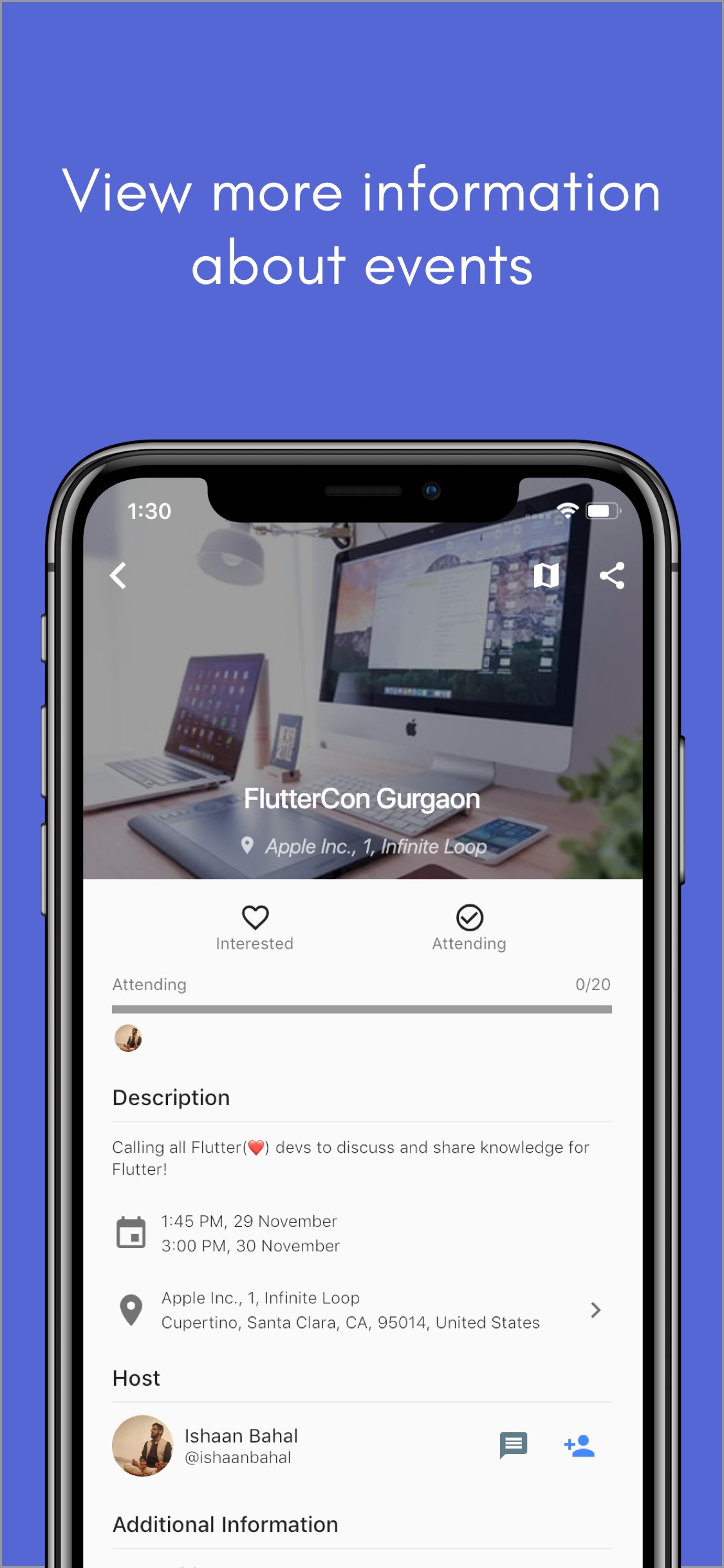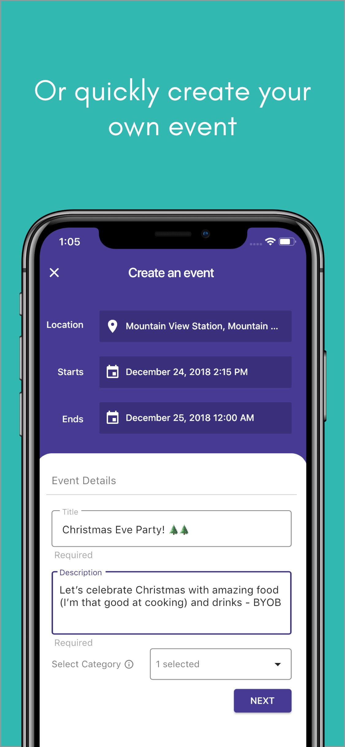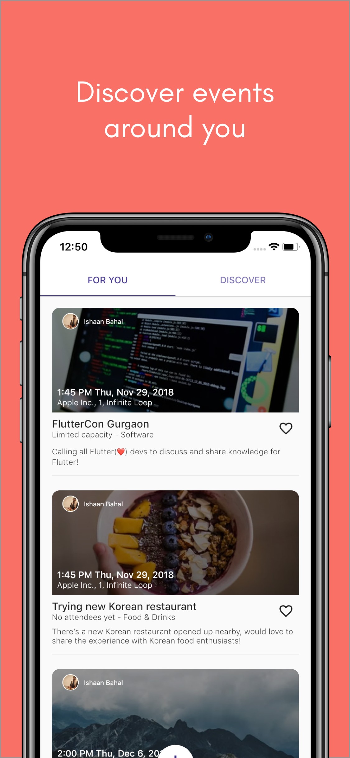 Choose your interests, and any event that lies under that category will be visible to you to join. Or you can create your own event to find people interested around you. The only limit to the type of events is your imagination