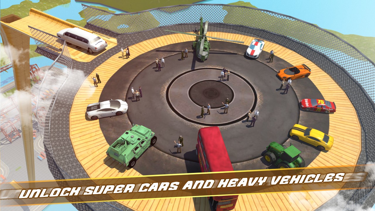 Get groovy with high end sports cars on mega ramp. Sports cars not your choice? No worries, try muscle cars, mountain cars or you can even try huge trucks and demolition derbies monster vehicles. If you still looking for more fun or ready to have great stunt driving then we also have train driving take off on mega ramp with high speed demolishing and crushing all other cars or trucks on the way.