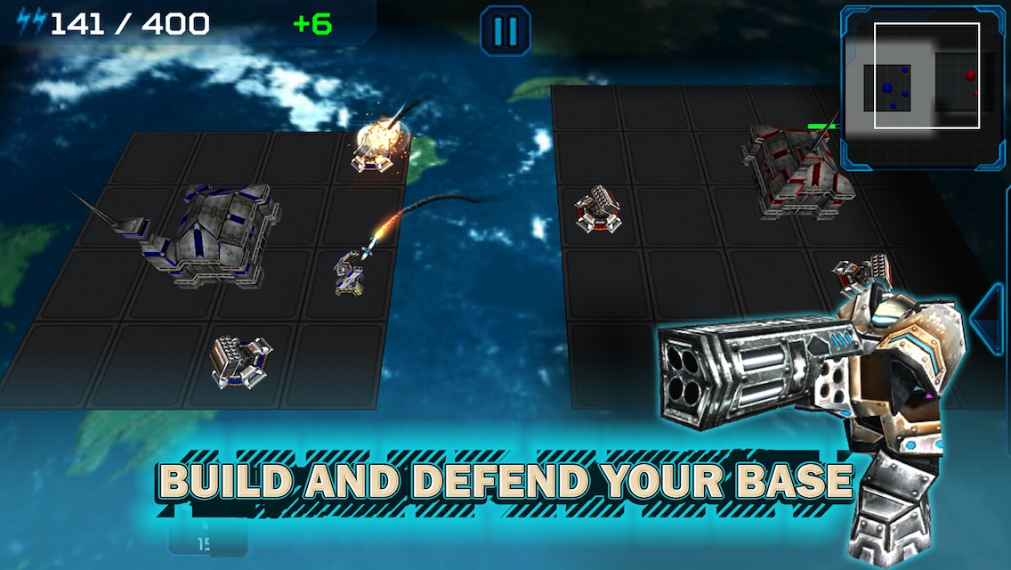 Explore the art of space war is so easy with Metal Warfare game. Players can get started with Air Force using Missile Launcher to attack enemies and build Anti-Missile, Anti-Air Missile to protect your base from enemies ‘s attacks. A lot of more building, structures and weapons will be unlocked in higher levels. Build smart and attack clever to win, you need to hurry because enemies base will growth really fast and keep improving their tactics.