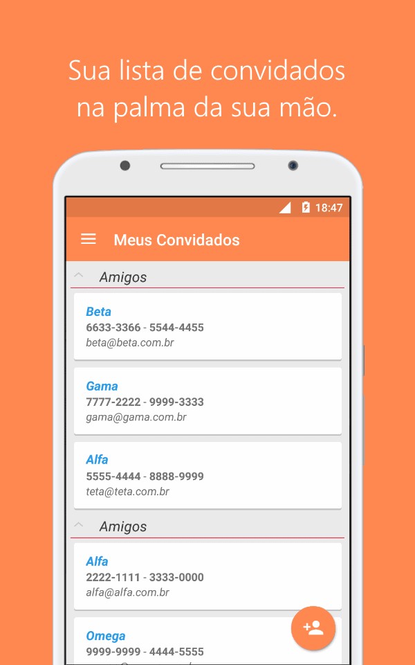 • Cadastrar seus convidados separando por grupos e saber a quantidade certa de pessoas.