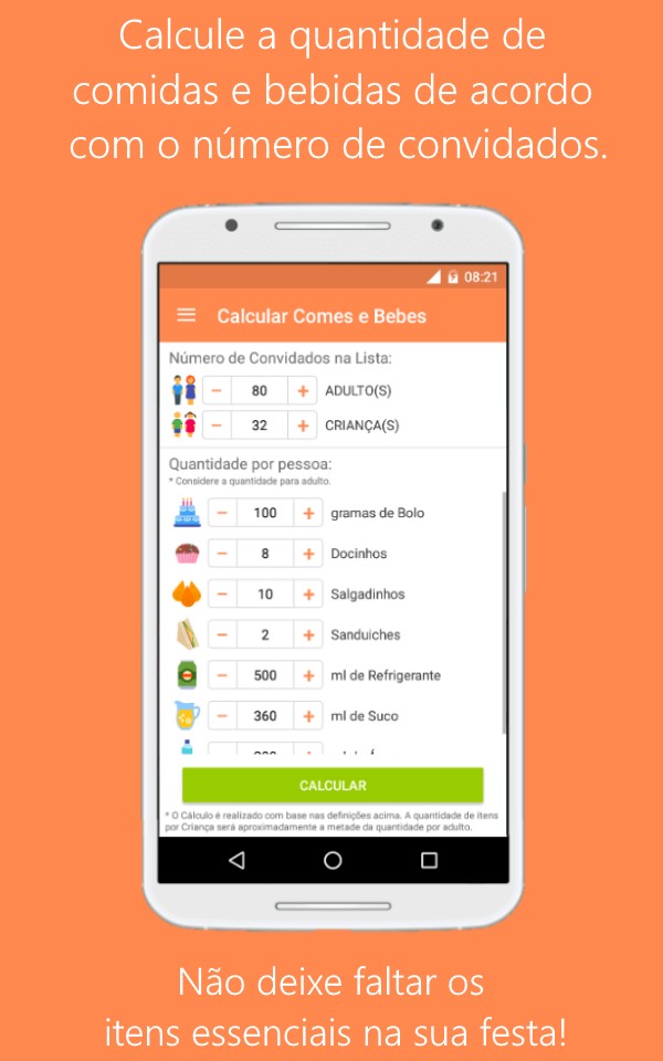 • Calcule la cantidad de comidas y bebidas según el número de invitados.