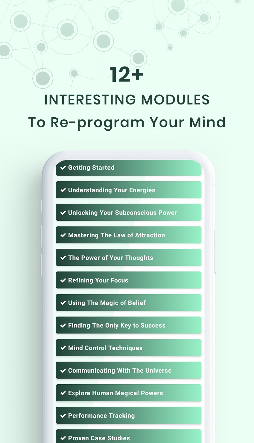 After using Mindola App, you will get the answers to questions like, what is law of attraction? What is subconscious mind & mind power? How to use LoA & mind power for attracting money, love, goals, success and more.