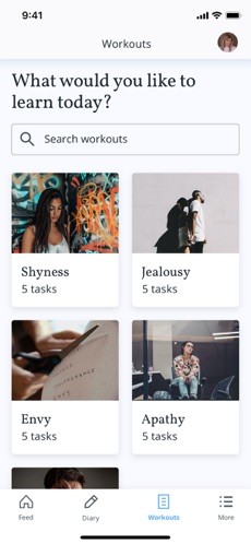 In our application you will find resources and tools to familiarize with your emotions, to better understand your needs and to help you focus and to achieve your desires, for your personal life as well as your relationships with others. We provide practical advices and accessible tools to support your mental wellbeing every day.
