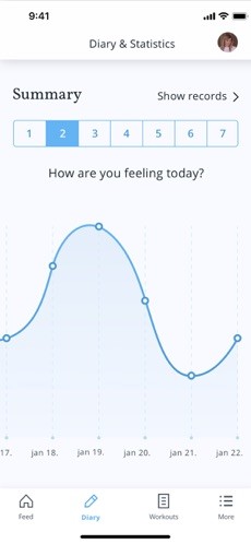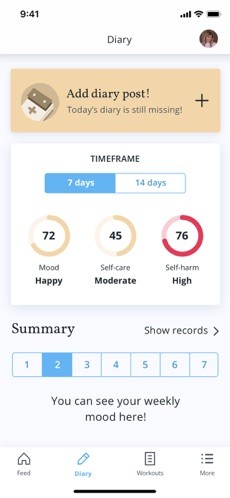- Diary, a psychotherapeutic journal with daily submissions and analytics;
