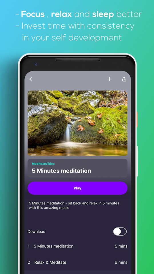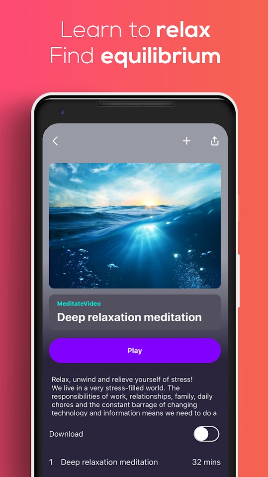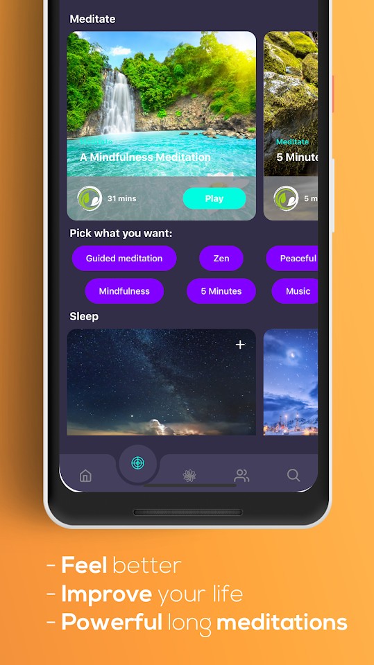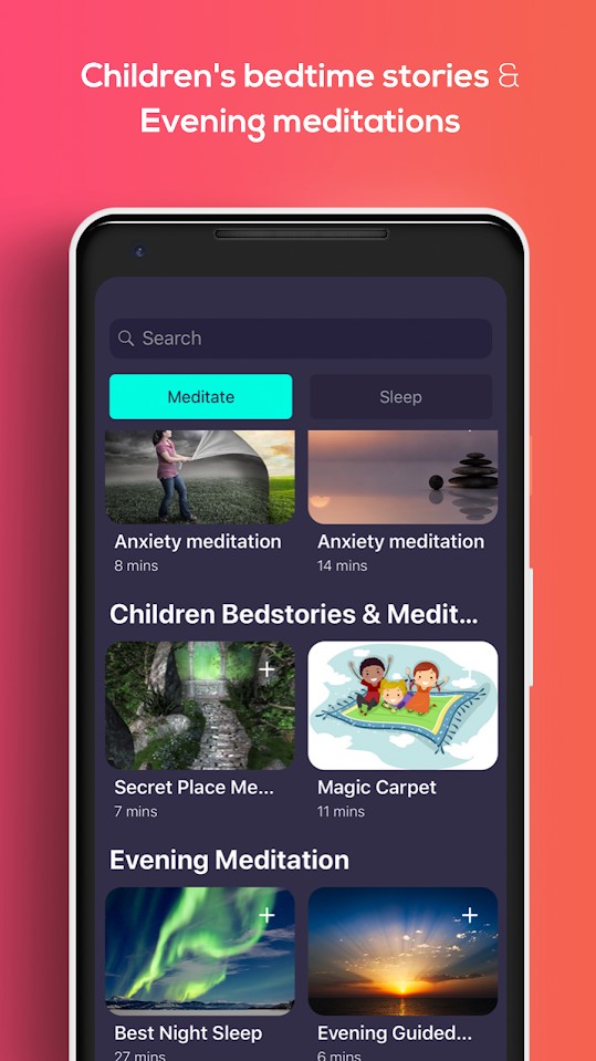 • Find your happy place and stay there with guided and unguided meditation sessions.