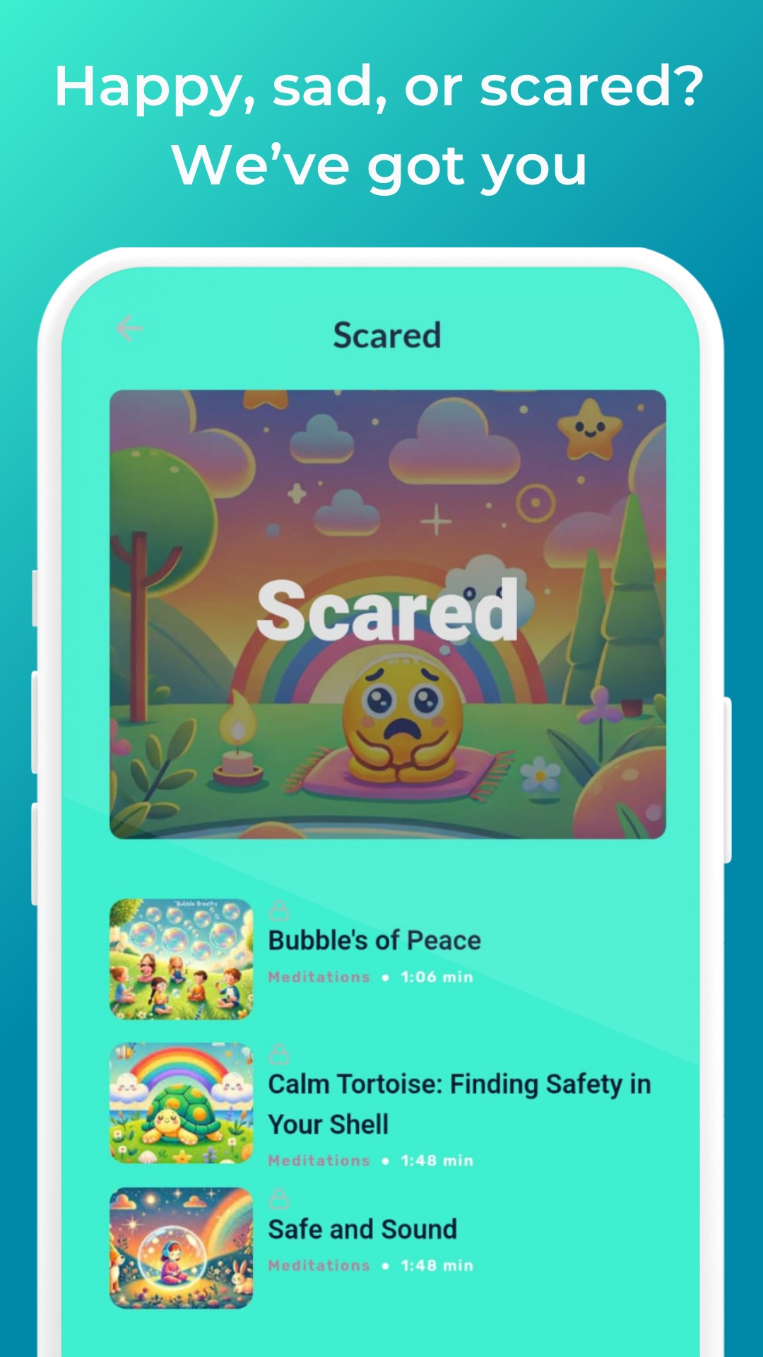 - Categorized Sessions: Whether your child needs help with sleep, anxiety, or just a moment of peace, our meditations are organized both by feeling and purpose for easy navigation.