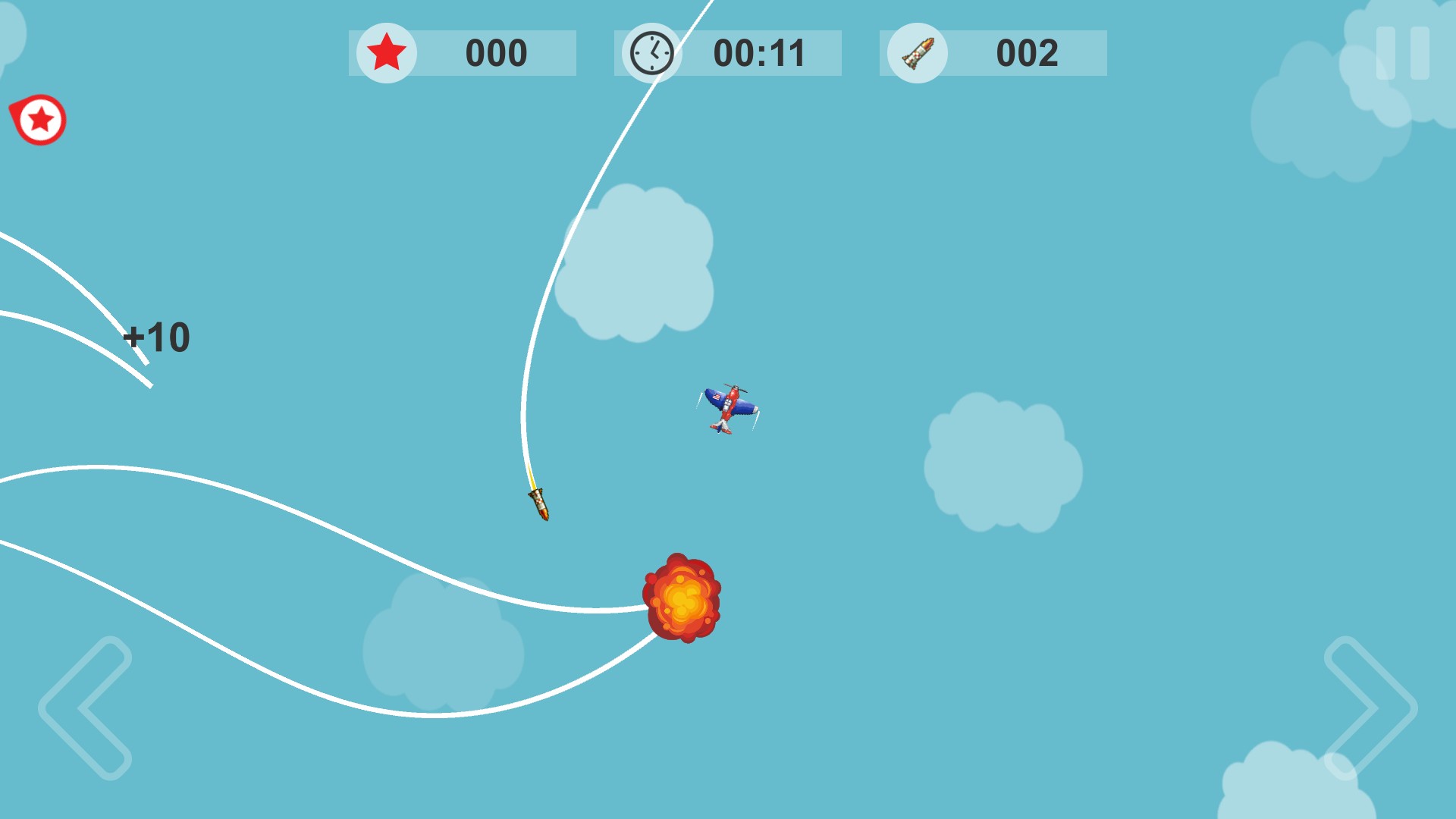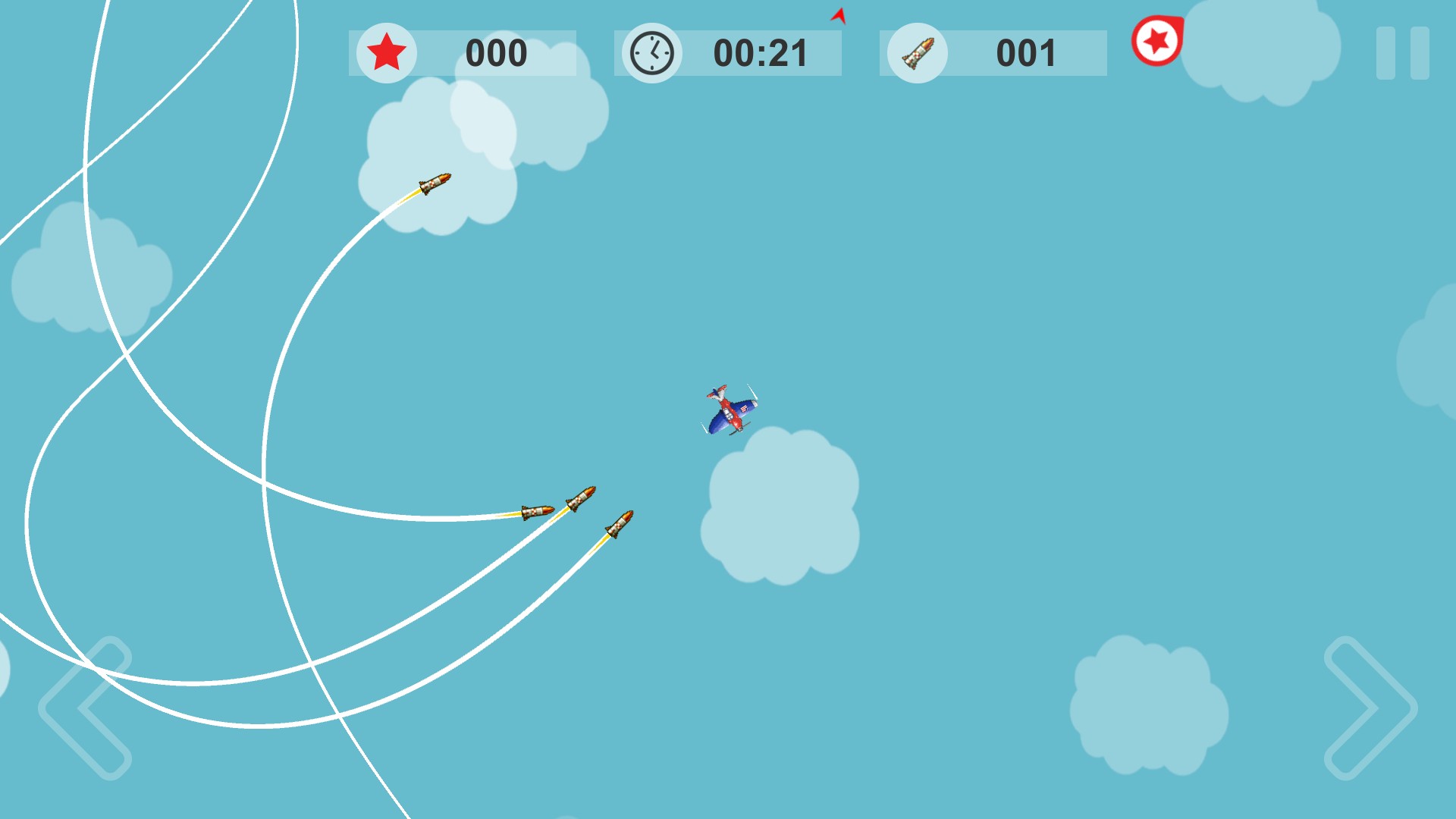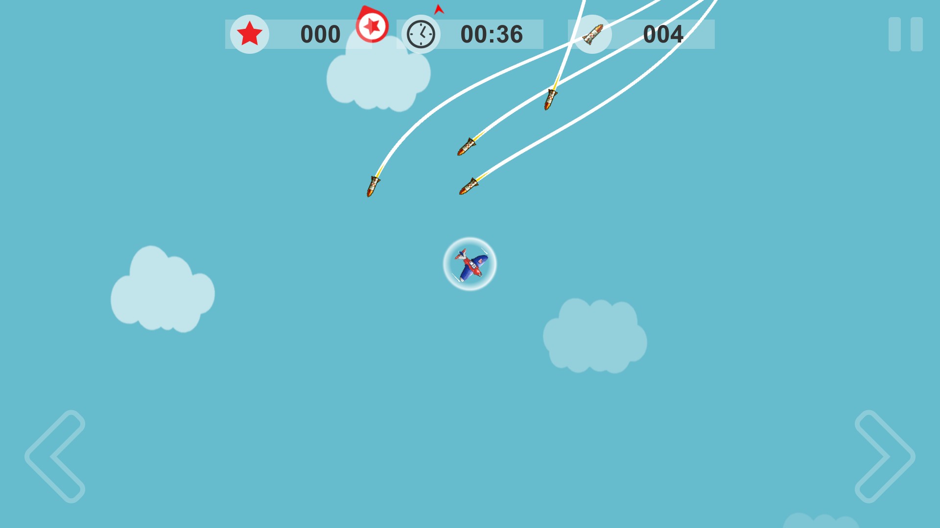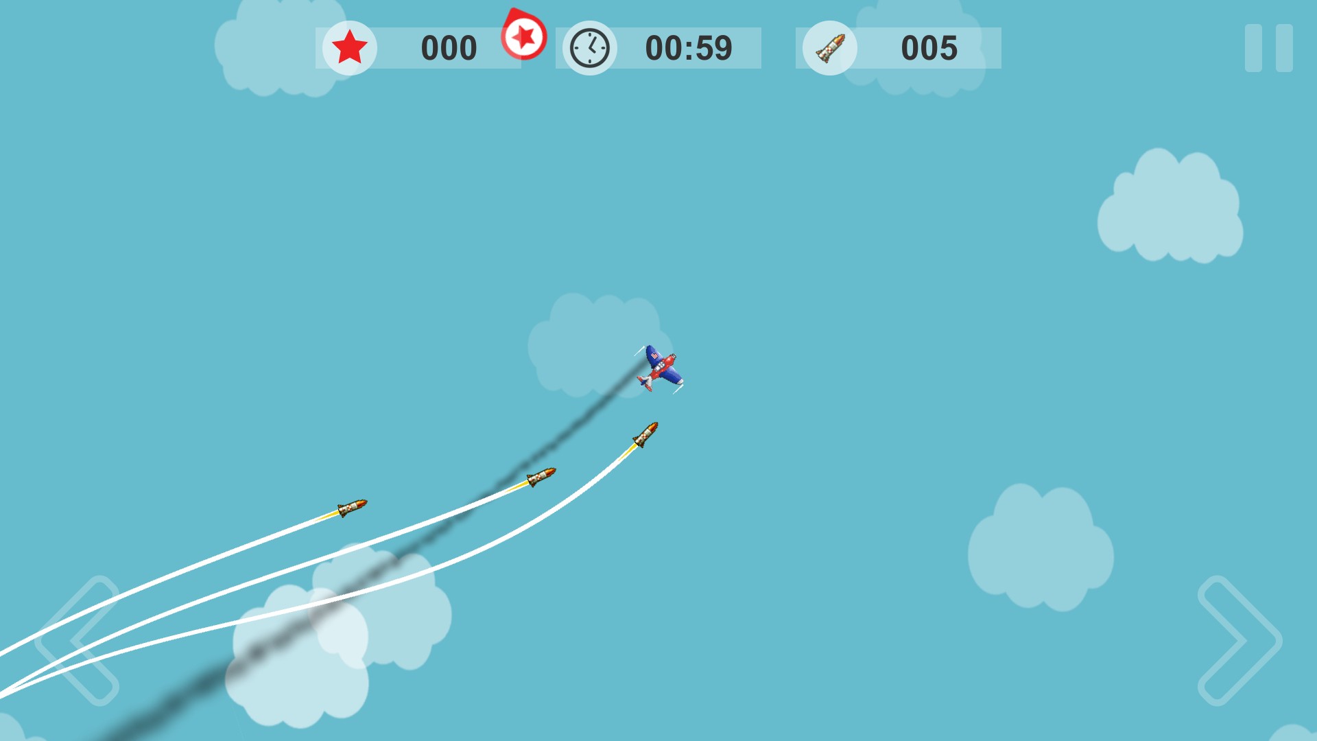 missile, escape, simple, fast, paced, addictive, 2d, game, mission, dodge, homing, plane, airplane, avoid, casual, compete, friend, family, achievement, leaderboard
