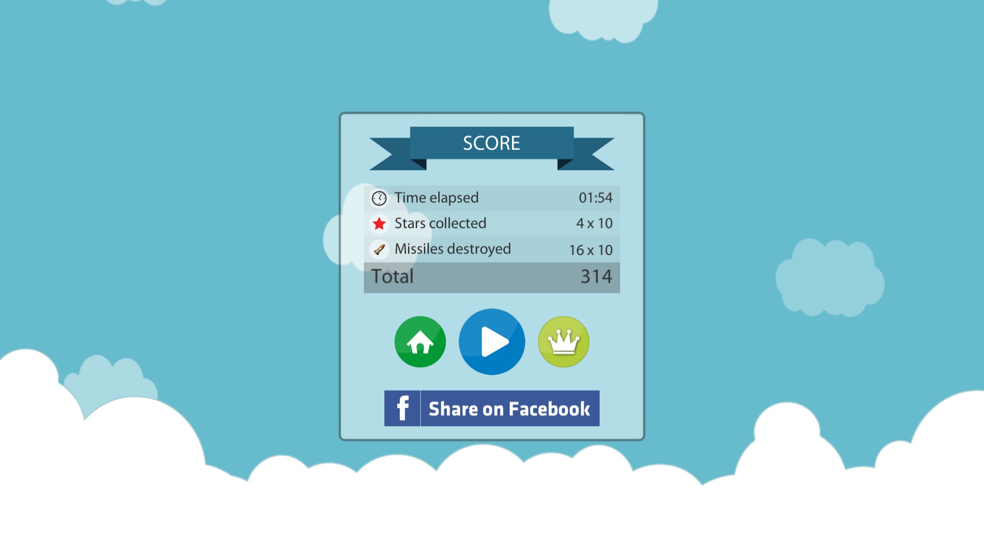 Use the simple control to fly your plane and avoid the missiles. Make them collide with each other and collect stars to increase final score.