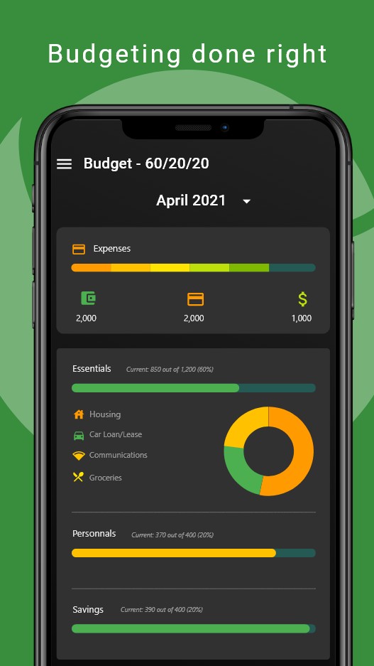 - Simple Budget Management (Split budgeting strategies like 60/20/20 or 50/30/20).