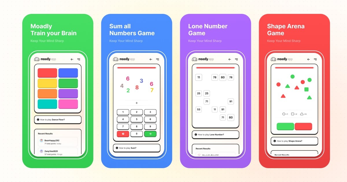 Moadly is a cognitive training app designed to improve memory, focus, attention, and problem-solving skills through fun mini-games. It’s available for iPhone, iPad, and web browsers, and it’s designed for users of all ages, including kids, students, professionals, and seniors.