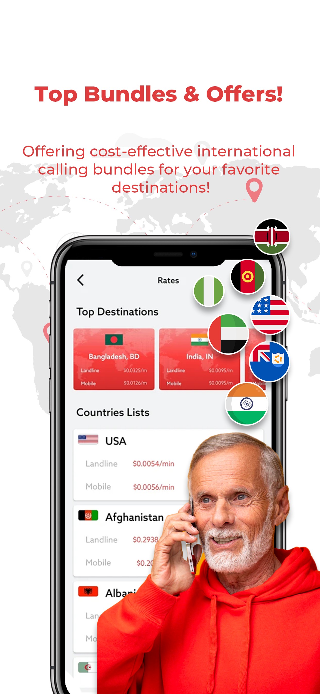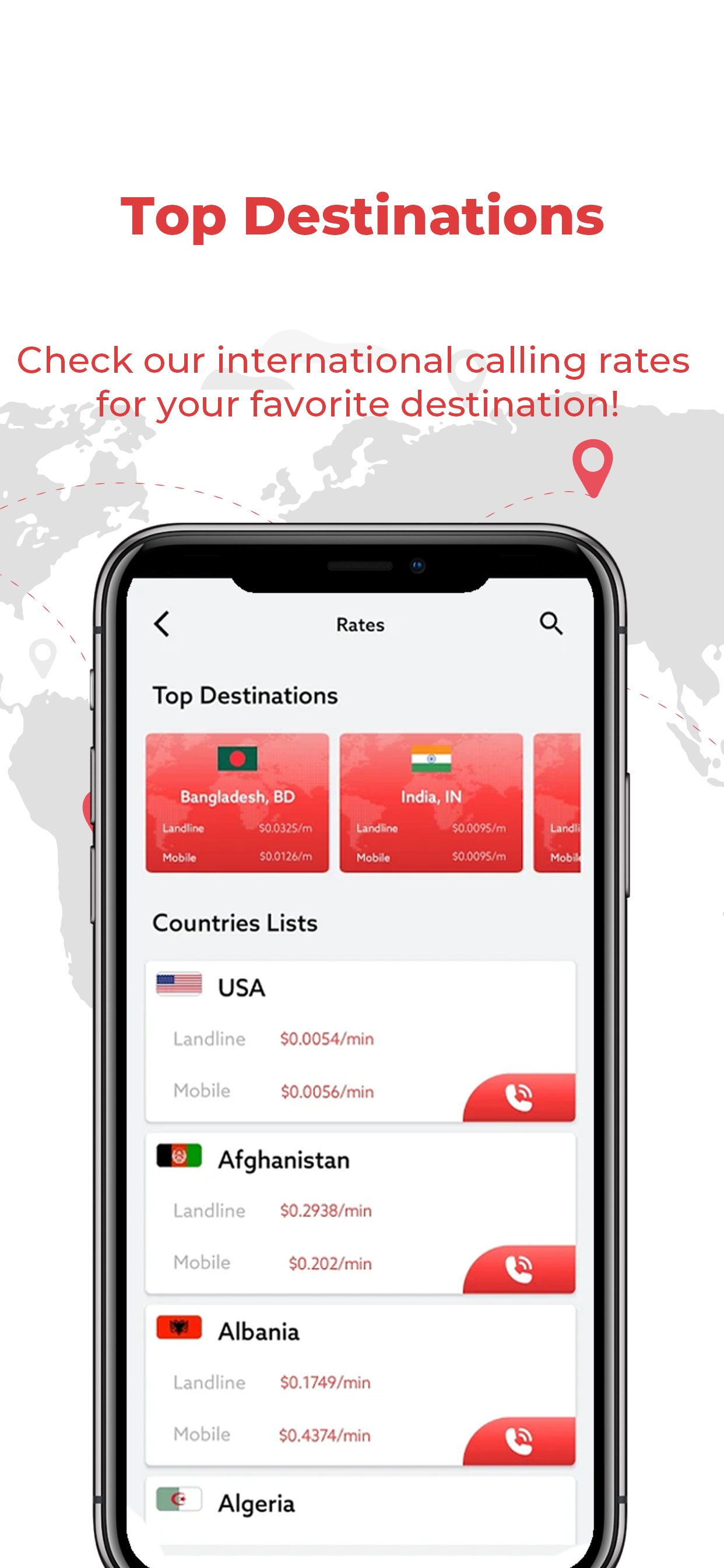 - Cheap calls at popular calling destinations such as India, Pakistan, Bangladesh, Nigeria, Ghana, Ethiopia, Egypt, Kenya, Sri Lanka, Saudi Arabia, Eritrea, UAE, Afghanistan, and many more