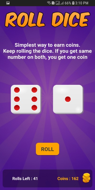 ★ Roll the Dice - Simple game. Same number on two dice will give you coins